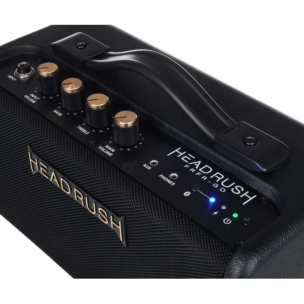 HeadRush FRFR-GO — портативный активный усилитель для электрогитары. Корпус выполнен из MDF с виниловым покрытием и оснащен тканевой защитной решёткой и тыловым фазоинвертором, что обеспечивает контролируемую отдачу в низкочастотной области. Акустическая система включает два 3-дюймовых динамика, работающих в широкополосном режиме, что позволяет корректно воспроизводить эмуляции усилителей и кабинетов без окрашивания сигнала. Питание возможно как от сети, так и от встроенного литий-ионного аккумулятора. Модель оснащена линейным входом, дополнительным входом Aux, модулем Bluetooth 5.0 для беспроводного стриминга, выходом на наушники и встроенным двухполосным эквалайзером. Также предусмотрен soft-clip и защита динамиков от перегрузки и клиппинга.