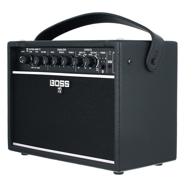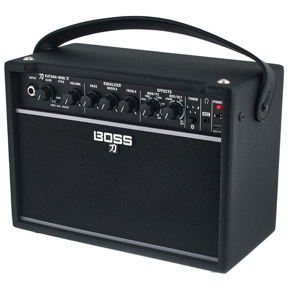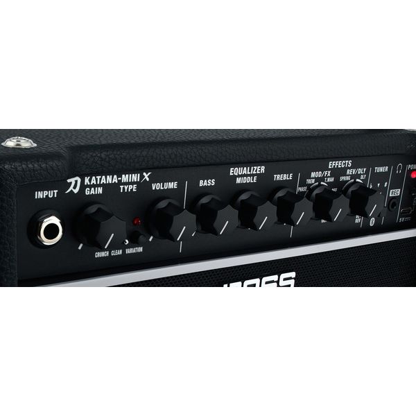Boss Katana-Mini X — портативный гитарный комбик мощностью 10 Вт с аналоговой схемотехникой Tube Logic и встроенным аккумулятором, предназначенный для домашних занятий, репетиций и мобильного использования. Усилитель имеет три базовых звуковых режима — Clean, Crunch и Brown — и вариации для каждого режима. Оснащён 5-дюймовым динамиком в деревянном корпусе, трёхполосным аналоговым эквалайзером, двумя секциями эффектов, тюнером, Bluetooth-приёмником для стриминга и USB-C зарядкой. Работа от аккумулятора обеспечивает до 10 часов автономной работы (при умеренной нагрузке). Мощность 10 Вт позволяет использовать устройство дома и в дороге, а вес и размеры дают удобство при переноске.