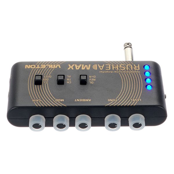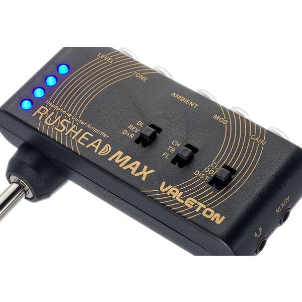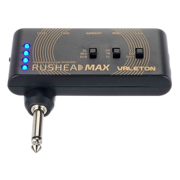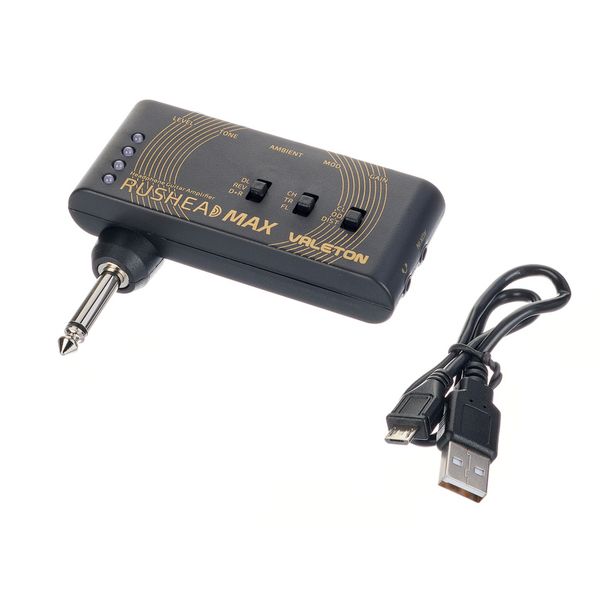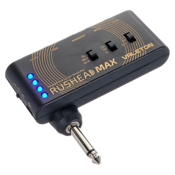 Valeton RushHead Max — карманный (портативный) гитарный усилитель‑эмулятор (headphone amp) с эффектами, предназначенный для электрогитары. Он сочетает в себе моделирование усилителя (clean, overdrive, distortion), эффекты стерео-модуляции (chorus, tremolo, flanger) и пространственные эффекты (delay, reverb), а также имеет выходы для подключения наушников или внешней системы.