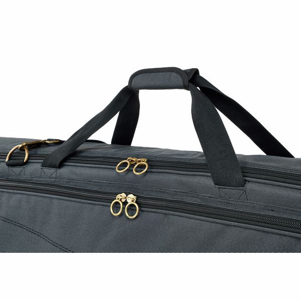 Kawai SC-1 Softcase — мягкий чехол, разработанный для безопасной транспортировки и хранения цифрового пианино Kawai ES-120. Чехол выполнен из прочного нейлонового материала с плотной подкладкой, которая защищает инструмент от механических повреждений, влаги и пыли. Внутренняя отделка дополнена фиксирующими ремнями, предотвращающими смещение инструмента при переноске. Чехол оснащён удобными ручками, регулируемым плечевым ремнём и усиленными молниями, рассчитанными на интенсивное использование. Дополнительный внешний карман предназначен для педали, кабелей, нот или аксессуаров. Конструкция рассчитана специально под размеры ES-120, что обеспечивает точную посадку и комфорт при переноске.