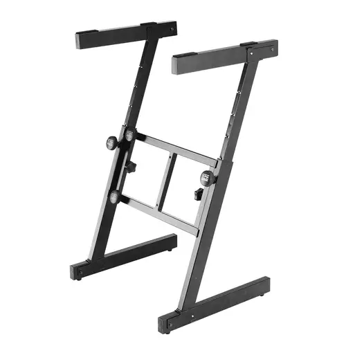 Самым популярным и распространенным видом установки под синтезатор является Х-образная стойка, которая состоит из двух металлических перекладин, скрещивающихся в центре. Такая конструкция подходит для большинства клавишных инструментов, легко регулируется по высоте и ширине. Для более динамичной экспрессивной игры используют двойные, усиленные подставки, которые не пружинят во время исполнения и способны удерживать более тяжелый вес синтезатора. Для экономии пространства и повышения функциональности используют многоярусные конструкции, позволяющие размещать сразу несколько музыкальных инструментов.