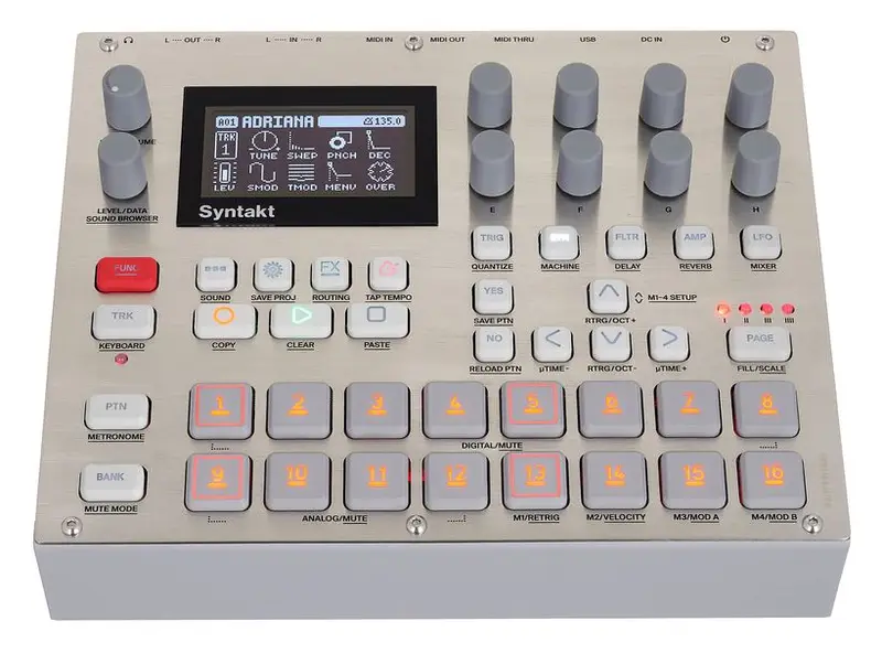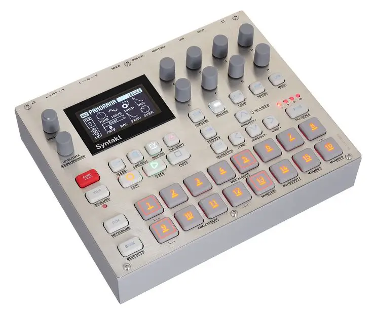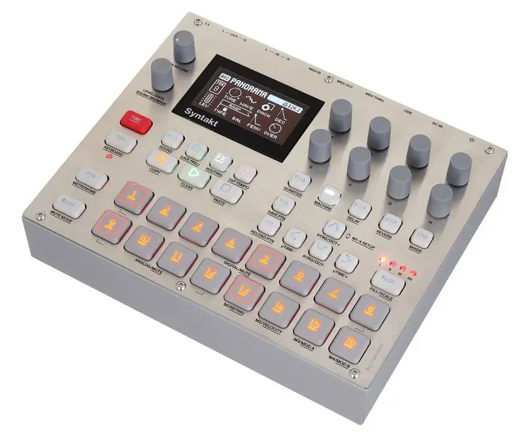 В аналоговой драм-машине Analog Rytm MK1 предусмотрено 8 голосов. Каждый из них снабжен аналоговыми фильтром и дисторшоном. Поддерживается загрузка пользовательских семплов (через USB-разъем).