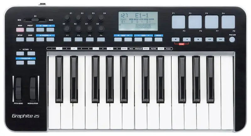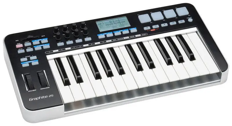 Этот компактный USB MIDI-контроллер имеет 32 клавиши. При этом у него отсутствуют пэды и крутилки.