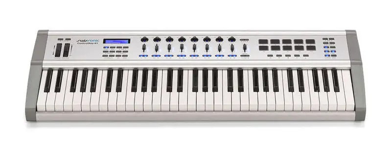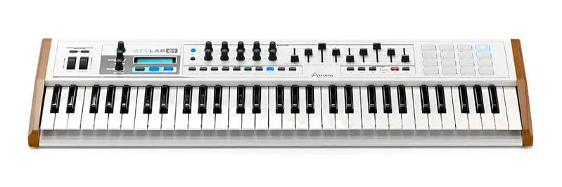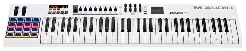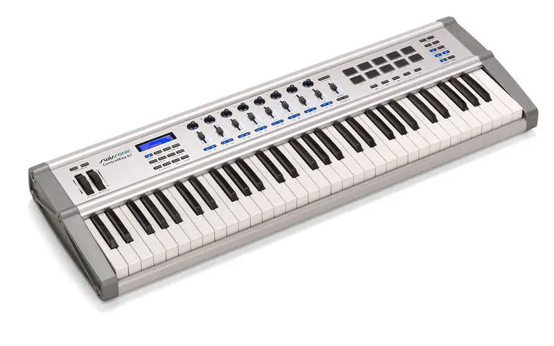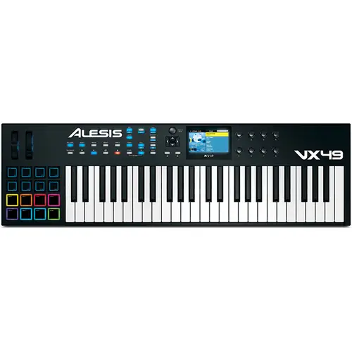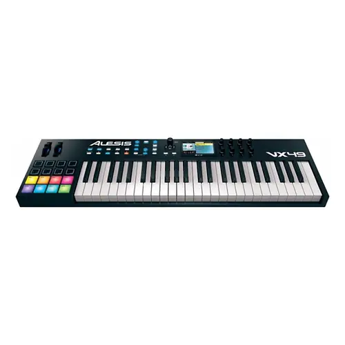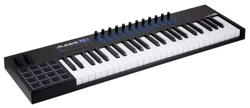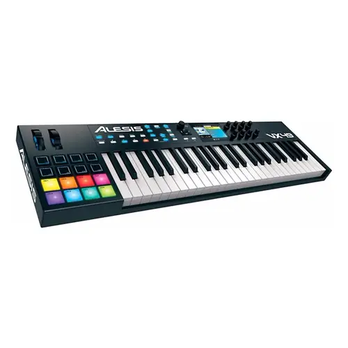 Синтезатор Alesis VI61 обладает облегченными клавишами и послекасанием. Количество пэдов увеличено до 16, добавлена разноцветная иллюминация. Это устройство обеспечивает интенсивный контроль над сигналом перехода в другое состояния во время звучания клипа верхнего DAW и композиционными программами.