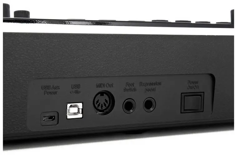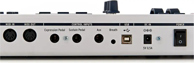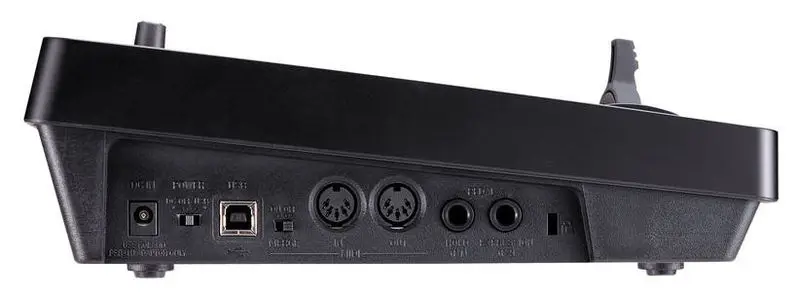 Дополнительный источник питания и стандартный MIDI выход позволяют использовать устройство автономно.