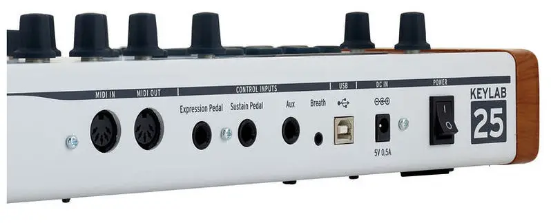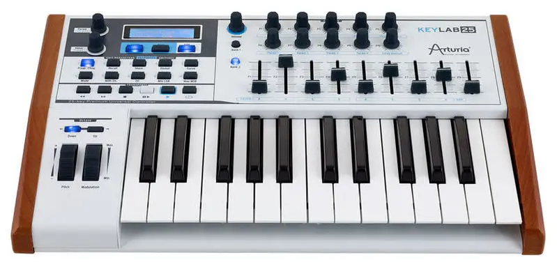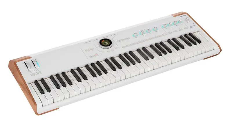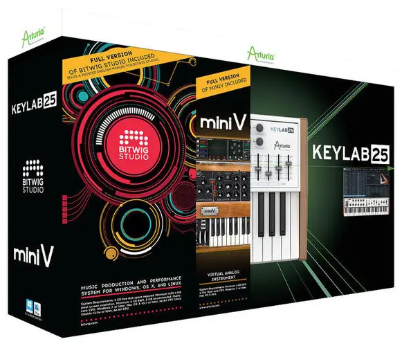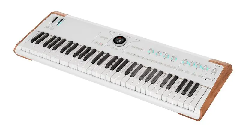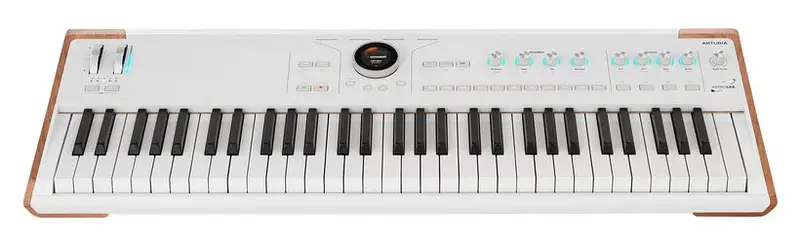 Динамическая MIDI-клавиатура полузвешенного типа (61 клавиша), 1000 самых разных звуков, Velocity & Aftertouch, программное обеспечение Analog Lab, Bitwig Studio, а также Mini V, пресеты типа Arturia Classic Synth и Pitch & Modulation, 1/4″-Jack входы для педалей сустейна, экспрессии, а также AUX, MIDI In/Out и USB.