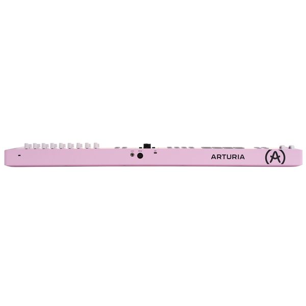 Arturia KeyLab Essential 61 Mk3 Rose Quartz — MIDI-клавиатура и контроллер третьего поколения. Устройство оснащено 61-клавишной клавиатурой с гибридным синтезаторным механизмом, обеспечивающим комфортный тактильный отклик и чувствительность к силе нажатия. Главным техническим обновлением версии Mk3 стал высококонтрастный 2,5-дюймовый ЖК-дисплей, который в сочетании с четырьмя контекстными кнопками и основным энкодером позволяет управлять миксом, навигацией по пресетам и встроенными творческими функциями (аккорды, гаммы, арпеджиатор) без обращения к экрану компьютера. Контроллер полностью интегрирован с экосистемой Arturia, поддерживает протоколы MCU, HUI и стандарт NKS для прямого управления совместимыми инструментами и эффектами, а также предлагает кастомные скрипты для бесшовной работы в Ableton Live, Apple Logic Pro, Image-Line FL Studio, Steinberg Cubase и Bitwig Studio.
