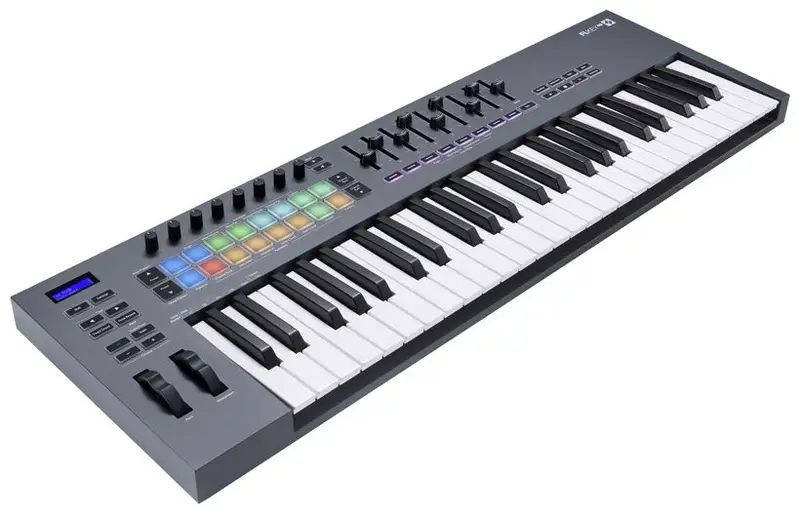 Novation Launchkey 88 — MIDI-клавиатура на 88 полувзвешенных полноразмерных клавиш. 16 динамических пэдов с подсветкой, чувствительных к velocity, могут использоваться для запуска лупов и семплов, а восемь ручек и девять фейдеров обеспечивают доступ к микшеру и параметрам программных инструментов/эффектов.