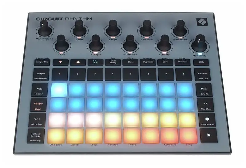 Четыре независимых монофонических трека секвенсора ударных позволяют создавать плотные ритмы, а программное обеспечение Novation Components дает возможность собрать собственные наборы звуков и загрузить их в Circuit Tracks через карту microSD. Два полифонических синтезатора Circuit Tracks позволяют экспериментировать и помогут дополнить проект басовыми и лидовыми партиями. А наличие шестиголосной полифонии позволит создать насыщенные пэды и стэбы, которые можно программировать в матрице пэдов. На пэды можно назначать 16 ладов (тоника тоже настраивается). Два MIDI-трека позволяют управлять MIDI-устройствами, аппаратными аналоговыми и цифровыми синтезаторами, драм-машинами, а также автономными виртуальными инструментами внутри DAW.