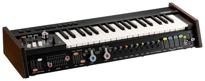 Korg Kaoss Replay - сэмплер с интегрированными эффектами Kaoss. Устройство оснащено 16 чувствительными пэдами с подсветкой LED и 5" OLED сенсорным дисплеем для управления эффектами и выбора сэмплов. Kaoss Replay поддерживает до 128 слотов сэмплов на проект. Интеграция с компьютером через USB аудиоинтерфейс. На борту 128 динамических эффектов Kaoss, включая фильтры, задержки, реверберации и другие. Максимальная длительность записи 30 минут (ресэмплинг) и 100 минут (live recording). Корпус из прочного алюминия. Входы/выходы включают линейный/фоно входы, микрофонный вход, AUX вход, выход для наушников, MIDI вход/выход. Подходит для работы в студии и для живых выступлений.