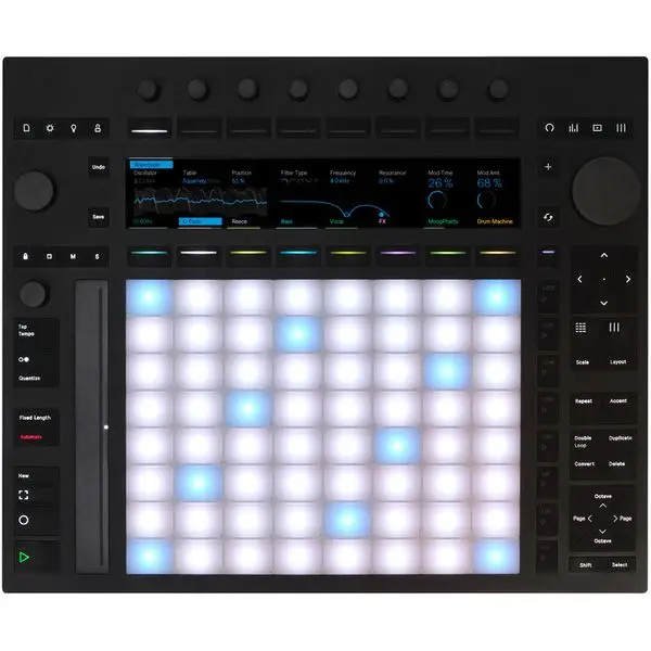 Ableton Move — автономный музыкальный инструмент, разработанный для мобильного создания музыки и интуитивного захвата идей. Оснащён 32 пэдами с поддержкой poly aftertouch, которые реагируют на силу нажатия для управления параметрами звуков. Секвенсор на 16 шагов позволяет создавать сложные паттерны, с возможностью автоматизации на каждом шаге. Интеграция с Ableton Live через Wi-Fi упрощает передачу проектов в рабочую среду на компьютере. Встроенные синтезаторы и сэмплеры, включая Drum Sampler, Wavetable и Drift, обеспечивают гибкость в создании звуков. В Move также предусмотрено 64 ГБ памяти для пользовательских сэмплов и пресетов, более 1500 звуков и инструментов в комплекте. Возможность использования встроенного микрофона и линейного входа для сэмплинга делает устройство универсальным как для студийной работы, так и для живых выступлений и живого сэмплинга. В автономном режиме грувбокс работает до 4 часов.