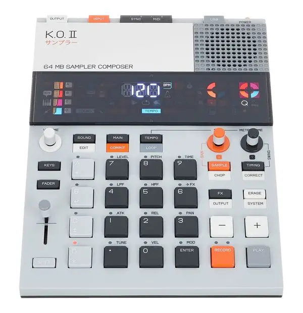 Teenage Engineering EP-133 K.O. II: The Champ Edition — ограниченная серия компактного сэмплера и секвенсора, вдохновлённая легендарным боксёром Мухаммедом Али. Устройство оснащено 16 чувствительными к нажатию пэдами с полифоническим aftertouch. Сэмплер поддерживает до 999 сэмплов с 24-битным качеством и частотой 46,875 кГц, а также имеет 64 МБ встроенной памяти. Встроенны 6 мастер-эффектов и 12 punch-in FX. Устройство поддерживает до 9 проектов, каждый из которых может содержать до 80 000 нот, с возможностью создания до 99 паттернов в 4 группах. Подключение осуществляется через USB-C, MIDI и SYNC порты, а также имеются вход и выход 3,5 мм. Питание возможно от 4 батареек AAA или через USB-C. В комплект также входит эксклюзивная 10-дюймовая виниловая пластинка.