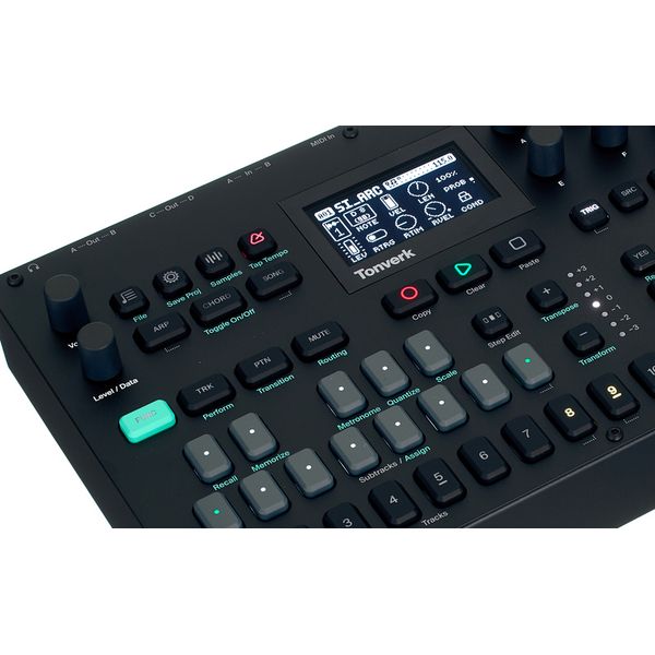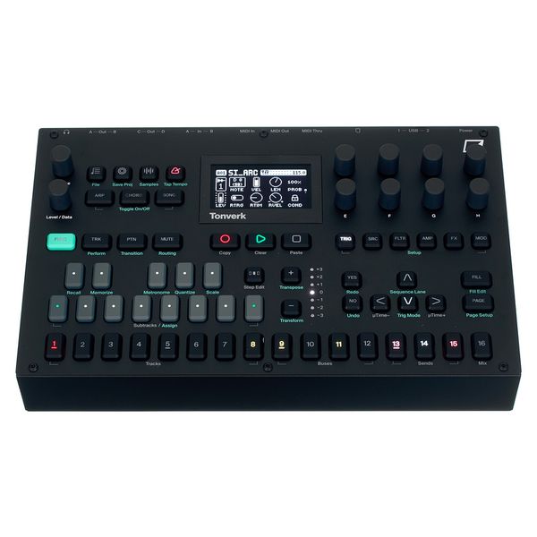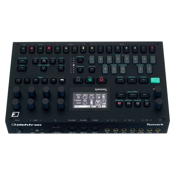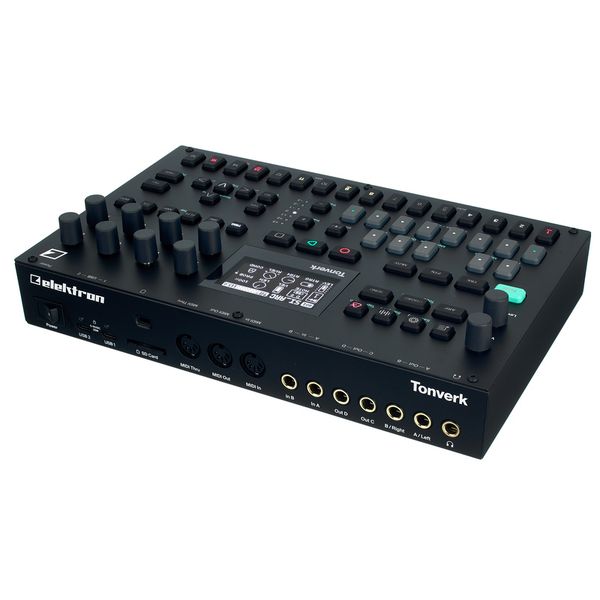Elektron Tonverk — полифонический мульти-семплер и рабочая станция обработки аудио c поддержкой мультисэмпловых инструментов. Tonverk имеет гибкую архитектуру с 16 треками (8 аудио-треков + 8 служебных треков) и продвинутой маршрутизацией шин и эффектов. Каждый трек снабжён собственным секвенсером с поддержкой до 256 шагов на паттерн, независимой длиной паттерна и полифоническими параметр-локами, позволяя программировать per-step velocity, trig-conditions и micro-timing. Аппарат поддерживает мультисэмплинг и Auto-Sampler для быстрого создания инструментов, предоставляет до 64 голосов полифонии и возможность создания под-дорожек (subtracks) для драм-партий (до 8 моно-subtracks на аудиотрек). Tonverk оснащён мощным набором эффектов (реверб, delay, компрессия, flanger, chorus, degrader и др.), парой балансных входов, четырьмя балансными выходами, MIDI In/Out/Thru, двумя USB-C, слот-ом SD и 128×64 OLED-экраном в стальном корпусе.