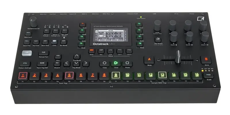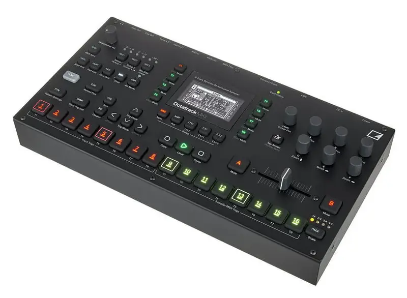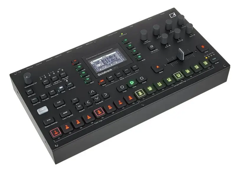 AKAI Professional MPC Live III — автономный рабочая станция с восьмиядерным процессором, 8 ГБ оперативной памяти и новой ОС MPC3 с пакетом MPC Pro Pack. MPC Live III поддерживает работу с 32 плагин-инструментами и 16 аудиодорожками, обеспечивая полифонию до 256 голосов. Оснащена новыми чувствительными к давлению и движению MPCe-пэдами с 3D-сенсорами, а также впервые получила режимы clip launching, шаговый секвенсор и набор программируемых перформанс-кнопок. Встроенный аккумулятор, микрофон и акустическая система делают её полностью мобильной, а богатый набор интерфейсов (MIDI, CV/Gate, USB-C, линейные и фонокорректорные входы, 24-канальный аудиоинтерфейс) позволяет интегрировать устройство в любые сетапы.