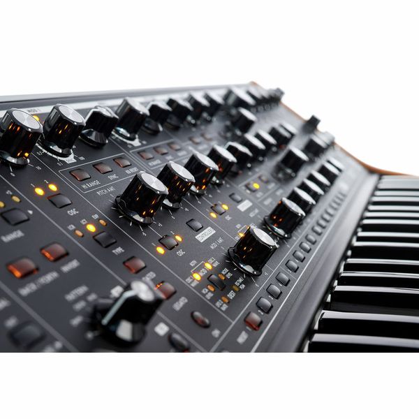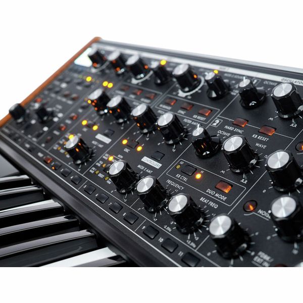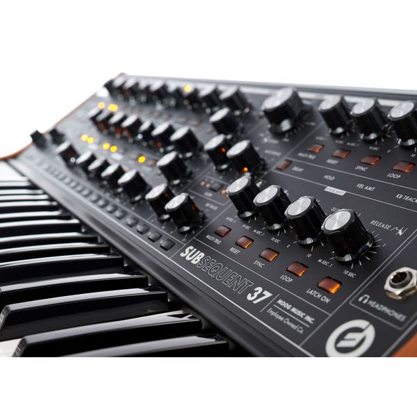 Moog Subsequent 37 - это аналоговый парафонический синтезатор, в основу дизайна которого легли разработки, использованные при производстве супермощного Sub 37 Tribute Edition. На контрольной панели расположились 40 кнопок и 74 регулятора. У этой модели синтезатора есть большой выбор аналогового инструментария для создания качественной музыки. Все контроллеры моментально реагируют на попытки настройки.