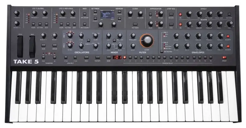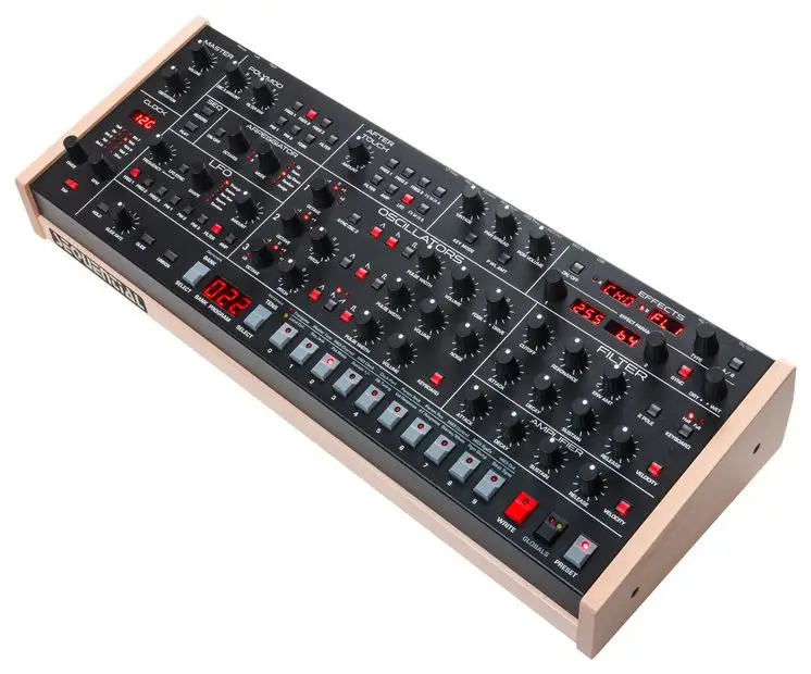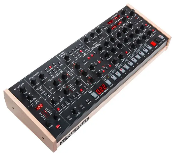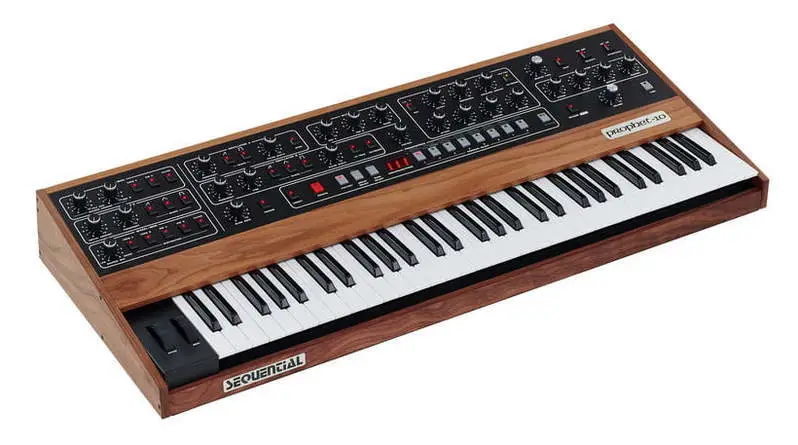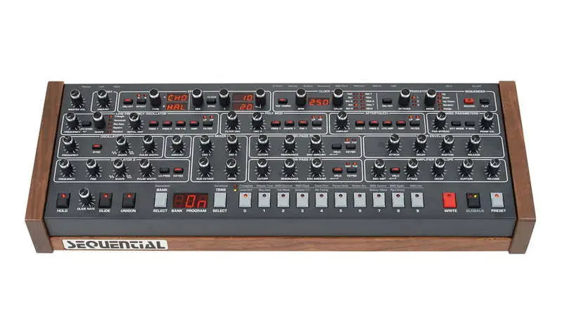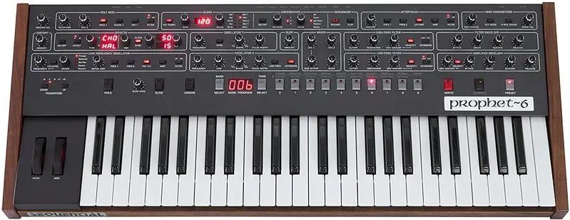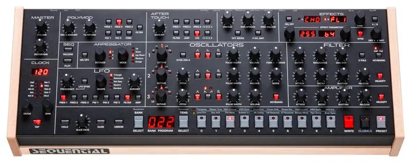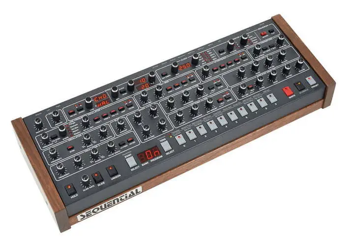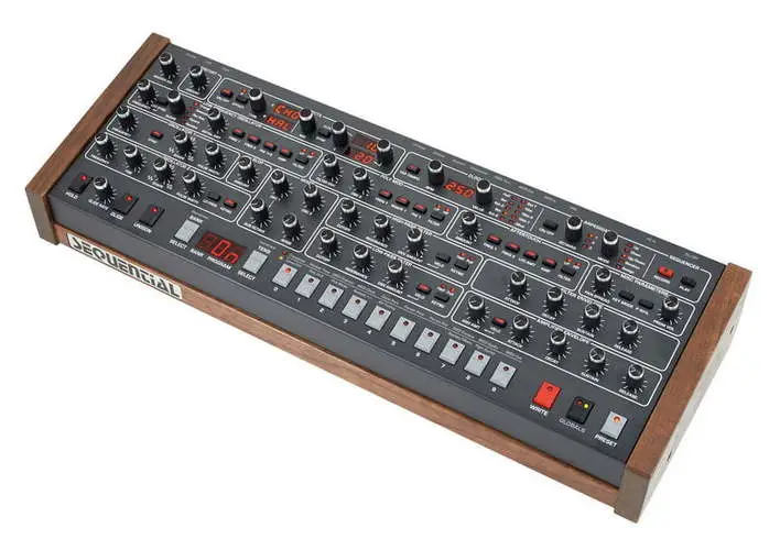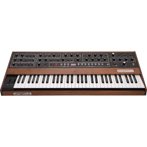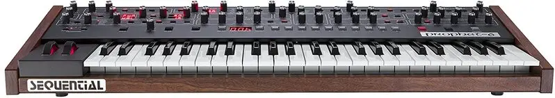 Sequential Trigon-6 — 6-голосный полифонический аналоговый синтезатор с тремя дискретными VCO на голос. Формы волны: треугольная, пилообразная, инвертированная пилообразная и импульс с изменяемой шириной. Встроенный фильтр с огибающей и переключаемой двух- и четырехполюсной конфигурацией с фидбеком. Синтезатор оснащен цифровыми эффектами (реверб, задержка, хорус, фленджер, фазер, ринг-модулятор), а также аналоговым стереодисторшном. Для работы с ритмом и мелодикой в Trigon-6 предусмотрены арпеджиатор, полифонический секвенсор на 64 шага и 49 полувзвешенная клавиша с velocity и aftertouch. За модуляцию отвечает LFO с аттенюацией и 8 параметрами назначения. Синтезатор поставляется с 500 заводскими пресетами и 500 пользовательскими слотами. Синтезатор поддерживает подключения по MIDI и USB. Для подключения педали экспрессии и педали сустейна предусмотрен отдельный вход 6,3 мм джек.