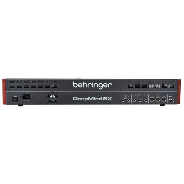 Behringer DeepMind 6X — 6-голосный аналоговый полифонический синтезатор с расширенной цифровой секцией эффектов и матрицей модуляции. Инструмент оснащён 37 полноразмерными полувзвешенными клавишами с чувствительностью к силе нажатия и aftertouch, обеспечивая выразительную динамику исполнения. Каждый из шести голосов включает два аналоговых осциллятора с синхронизацией, генератором шума и гибкими режимами унисона и полифонии с детюном, панорамированием и дрейфом строя до 6 голосов на ноту. Встроенный аналоговый фильтр низких частот с переключаемым наклоном 12/24 дБ на октаву и регулируемым резонансом дополнен глобальным высокочастотным фильтром 6 дБ/окт с переключателем Bass Boost. DeepMind 6X предлагает 3 ADSR-огибающие на голос (VCF, VCA и MOD), 2 LFO на голос с 7 формами волны, 8-канальную матрицу модуляции (до 25 источников и 133 назначений), 32-шаговый секвенсор с MIDI-синхронизацией и продвинутый арпеджиатор с tap tempo и пользовательскими паттернами. Встроенные 4 процессора эффектов TC Electronic и Klark Teknik (SHARC DSP) предлагают более 30 алгоритмов с true bypass, включая Reverb, Delay, Chorus, Flanger, Phaser и Multiband Distortion.