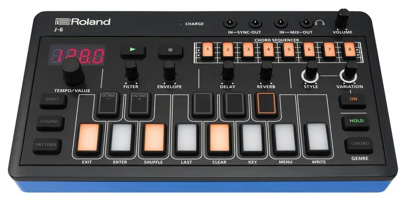 Roland S-1 — портативный 4-голосный синтезатор. Клон легендарного SH-101 с флагманской технологией Analog Circuit Behavior от Roland. Синтезатор оснащен четырьмя режимами работы: моно, поли, унисон и аккорд, а также четырьмя типами осцилляторов: квадратный, пилообразный, саб-осциллятор и шумовой. Встроенная клавиатура охватывает более двух октав и имеет 64-шаговый редактируемый секвенсор с автоматизацией параметров и настройкой вероятности проигрывания и рэтчета на каждый шаг. С помощью функции D-Motion можно управлять параметрами звука, перемещая синтезатор в пространстве. S-1 оснащен 3 эффектами, включая задержку, реверберацию и хорус. Девайс синхронизируется по MIDI и USB-C. Встроенная литий-ионная батарея обеспечивает до 4.5 часов работы на одном заряде.