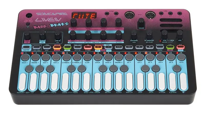 Sonicware LIVEN Ambient Ø — цифровой синтезатор, специально разработанный для создания дронов, падов, атмосфер, текстур. LIVEN Ambient Ø оснащен флагманской системой синтеза Blendwave Modulation, включающей 6 различных алгоритмов и 32 волны. Инструмент поддерживает 10-голосную полифонию и предлагает 4 слоя для формирования звука: Drone, Pad, Atmos и Noise. Слой Noise способен обрабатывать стереосэмплы длительностью до 8 секунд (есть функция сэмплинга вживую). Для обработки звука доступны 9 алгоритмов реверберации, а также эффекты Tape Delay, Reverse Delay и 4 мастер-эффекта, включая Overdrive и Stereo Chorus. Встроенный секвенсор поддерживает до 64 шагов на слой и позволяет записывать партии и автоматизацию в реальном времени. Инструмент оснащен 16 регуляторами для управления параметрами и информативным LC-дисплеем. Для подключения предусмотрены линейные вход и выход, выход на наушники, а также MIDI и SYNC интерфейсы. Питание осуществляется от 9V DC адаптера или 6 батареек типа AA.