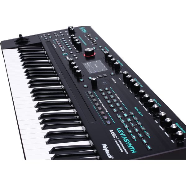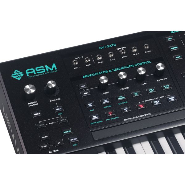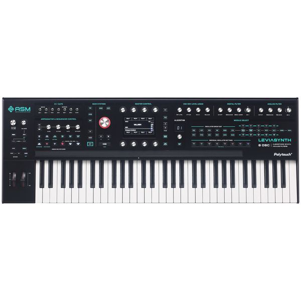 ASM Leviasynth Keyboard — полноразмерная клавишная версия гибридного алгоритмического синтезатора нового поколения, сочетающая цифровую генерацию звука с аналоговой фильтрацией и ориентированная на глубокий и модульный саунд-дизайн. Инструмент построен на архитектуре Algorithms, позволяющей комбинировать до восьми осцилляторов на каждом из 16 голосов полифонии и динамический переключать схемы синтеза. Клавиатура оснащена полноразмерными клавишами с чувствительностью к силе нажатия и поддержкой Polytouch, обеспечивая совместимость с MPE-контроллерами. Арсенал Leviasynth включает расширенную матрицу модуляции, систему цифровых фильтров с множеством типов обработки и аналоговый 4-полюсный фильтр низких частот с предусилением, секвенсор на три дорожки, арпеджиатор, глубокие возможности CV/Gate интеграции и развитый эффект-процессор.