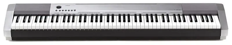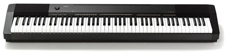 Privia PX-150BK - цифровое фортепиано от фирмы Casio. Модель Privia PX-150BK весит всего 11.1 кг (без стойки); она очень лёгкая и удобная в транспортировке. Возможности для игры и выразительность звучания близки к акустическому аналогу, и всё это - без дорогостоящего массивного корпуса. Высококачественные клавиши с покрытием под эбеновое дерево и слоновую кость придают модели элегантный вид, а их матовая поверхность предотвращает соскальзывание и обеспечивает приятные ощущения при игре.