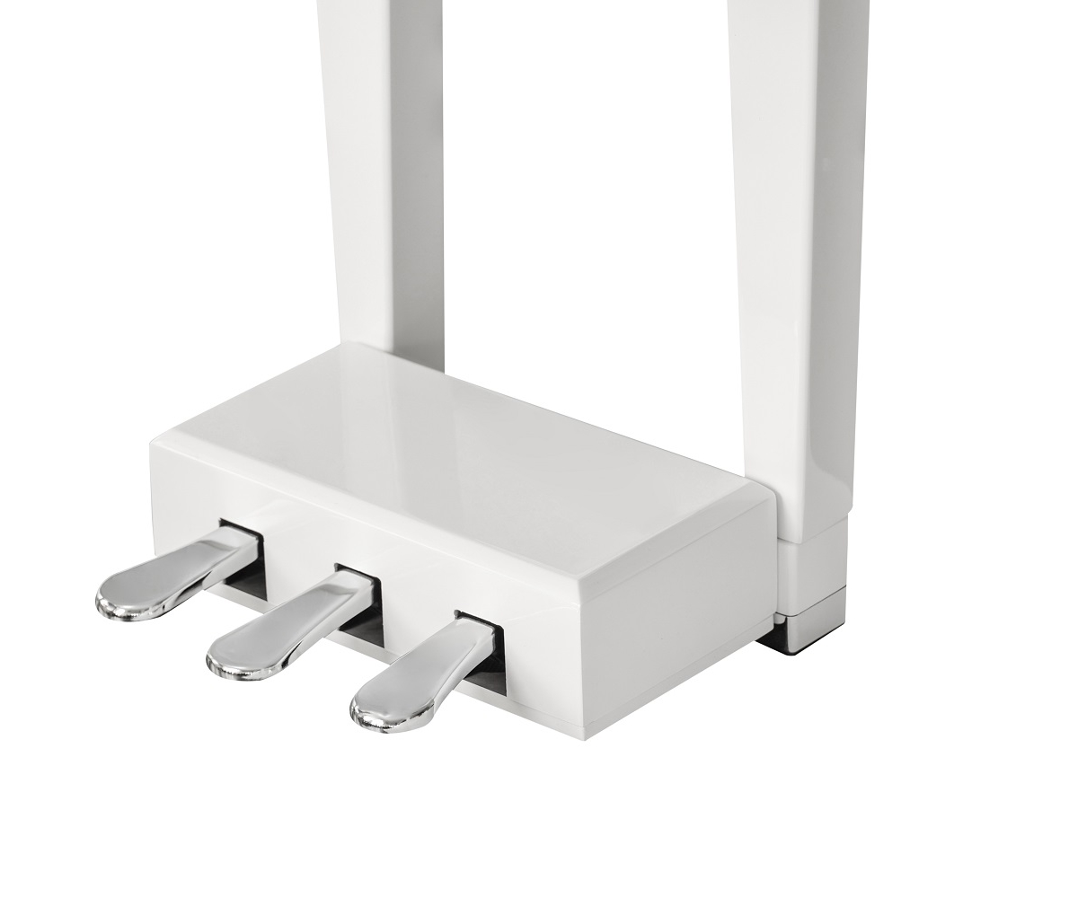 Kurzweil CUP G1W WHP — цифровое пианино, выполненное в корпусе с глянцевым белым покрытием и ориентированное на профессиональную игру, обучение и домашнее студийное применение. Инструмент оснащен полноразмерной 88-клавишной клавиатурой W1 Ivory GT с натуральными деревянными клавишами, четырехзонной молоточковой механикой и синтетическими покрытиями под слоновую кость/черное дерево, обеспечивая аутентичное акустическое ощущение, взвешенность и стабильность возврата. Встроенная звуковая библиотека KORE 2.1 формирует детализированную тональную палитру, поддерживаемую полифонией 256 голосов и набором фирменных тембров Kurzweil. Корпус включает интегрированную 50-ваттную стереосистему с четырьмя динамиками, переднюю панель с интуитивным управлением и LCD-дисплеем, а также полный комплект встроенных педалей (Sustain, Sostenuto, Soft) с поддержкой half-damper. Пианино поддерживает проводное и беспроводное подключение (USB Audio/MIDI, Bluetooth 5.2), что позволяет использовать его как внешний звуковой модуль, MIDI-клавиатуру или автономный инструмент для практики, записи и выступлений.