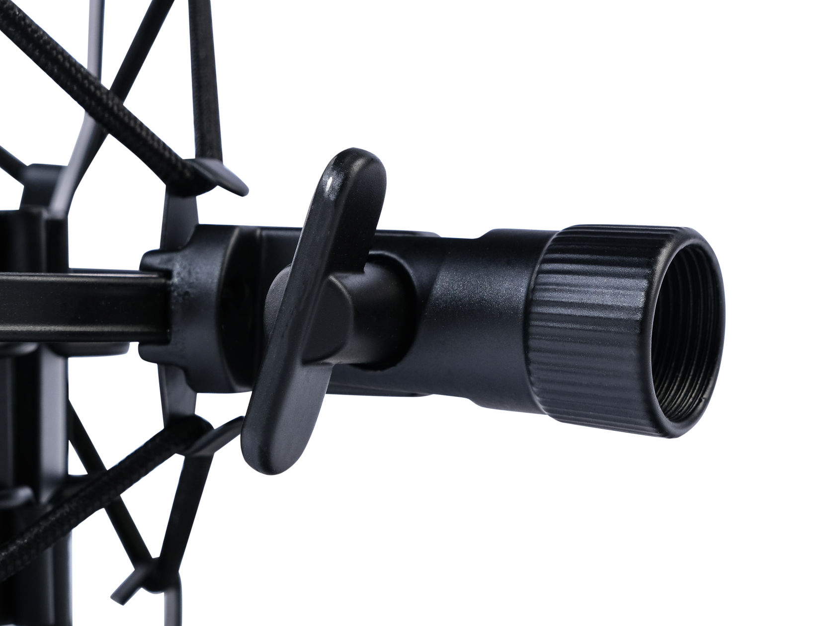 Superfix XMJ1B-X — антивибрационное подвесное крепление (шокмаунт) для студийных и вещательных конденсаторных микрофонов, рассчитанное на установку корпусов диаметром 48–53 мм. Конструкция использует жесткое металлическое шасси из стальных элементов в сочетании с эластичной системой подвесов, что позволяет эффективно изолировать микрофон от механических вибраций стойки, низкочастотных шумов. Узел крепления оснащен адаптерами 5/8" и 3/8", что обеспечивает совместимость с большинством микрофонных стоек, а матовое черное покрытие снижает отражения в студийном свете. Геометрия рамки и распределение натяжения подвесов оптимизированы для удержания крупных капсюльных микрофонов, исключая боковое смещение.