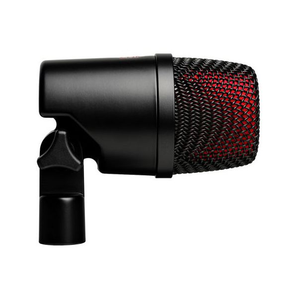 sE Electronics V Kick Black — динамический инструментальный микрофон с суперкардиоидной диаграммой направленности, разработанный специально для бас-барабана и других источников с выраженной низкочастотной энергией, включая напольные томы, перкуссию и кабинеты бас-гитары. Модель оснащена кастомной капсулой DMC7 SB с алюминиевой звуковой катушкой и неодимовым магнитом, оптимизированной для передачи самых низких и громких сигналов с высокой атакой и выраженным панчем. Два переключателя на задней панели обеспечивают четыре варианта звуковой настройки — от тёплого классического характера до современного агрессивного звучания, что позволяет адаптировать микрофон под различные стили и условия живых выступлений. Запатентованная интегрированная подвеска эффективно изолирует капсулу от вибраций и механических ударов. Компактный корпус с интегрированным поворотным механизмом облегчает установку внутри или снаружи бас-барабана. Конструкция полностью металлическая: корпус выполнен из литого цинкового сплава, решётка из пружинной стали, разъём позолоченный 3-контактный XLR.