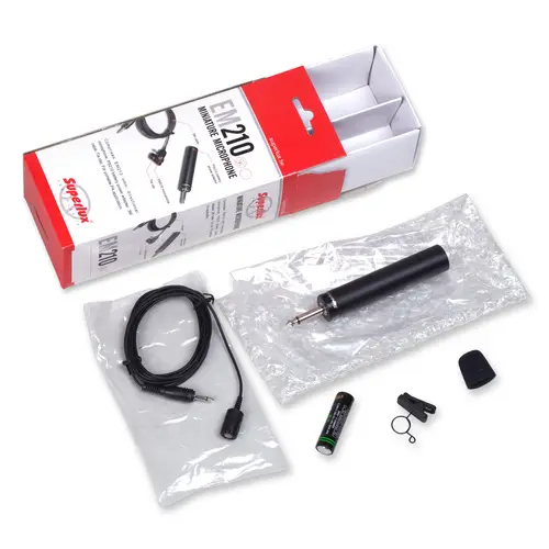 Микрофон оборудован защелкой для крепления, поролоновой ветрозащитой, переходником на джек ¼”. Качественная запись обуславливается широким диапазоном частот.