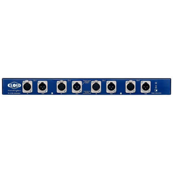 Cloud Microphones Cloudlifter CL-4 Mic Activator – это портативный четырехканальный микрофонный предусилитель. Устройство способно значительно снизить шумы, вызванными использованием длинных кабелей и/или предусилителей с малым коэффициентом усиления. Простая в использовании автономная конструкция нуждается только в фантомном питании и подходит для работы с любыми конденсаторными микрофонами. Используя дискретную схему JFET, предусилитель гарантирует идеальную импедансную нагрузку для оптимальной производительности. Модель можно установить в рэк и использовать для сцены, телевещания или работы в студии. Коммутационные возможности устройства представлены 4-мя трехконтаткными входами XLR типа гнездо и 4-мя трехконтактными выходами XLR типа штекер.