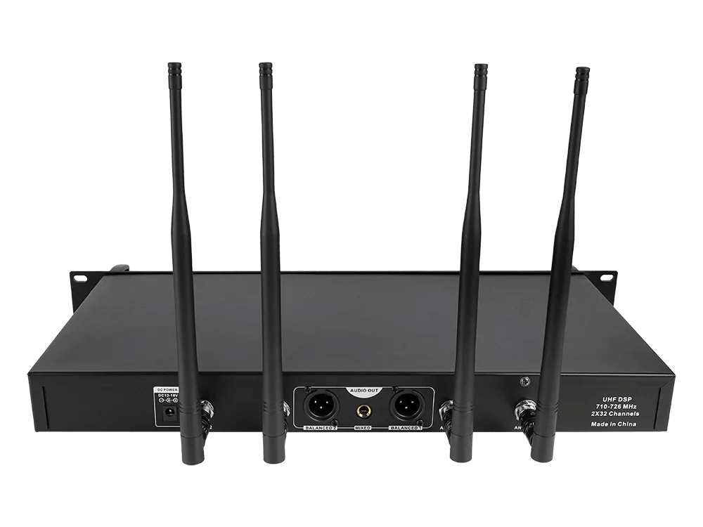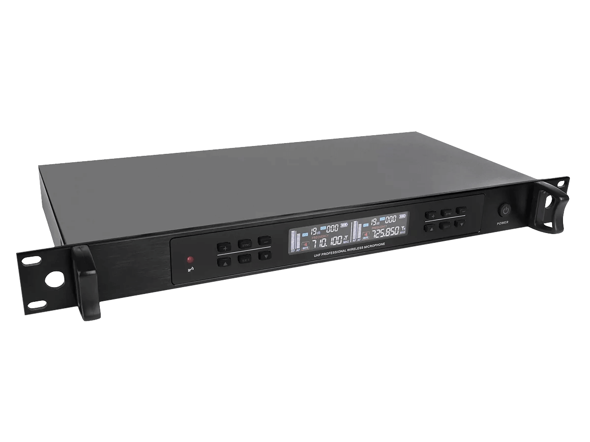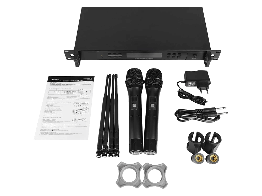 Axelvox DWS7000HT (TD Bundle) — беспроводная двухканальная радиосистема True Diversity с возможностью установки в рэк. Включает стационарный двухканальный приемник и два ручных микрофона-передатчика. Система работает в диапазоне 710–726 МГц и использует цифровую модуляцию 4-DQPSK для повышения стабильности сигнала, минимизации искажений и устойчивой передачи звука в условиях плотного радиочастотного спектра. Приемник обеспечивает автоматическое сканирование свободных частот, независимую регулировку уровня каждого канала, Auto-Mute и ИК-синхронизацию с передатчиками. Ручные микрофоны выполнены из алюминия, оснащены динамическими капсюлями с кардиоидной диаграммой направленности и LCD-дисплеями для индикации частоты и уровня заряда батареи.