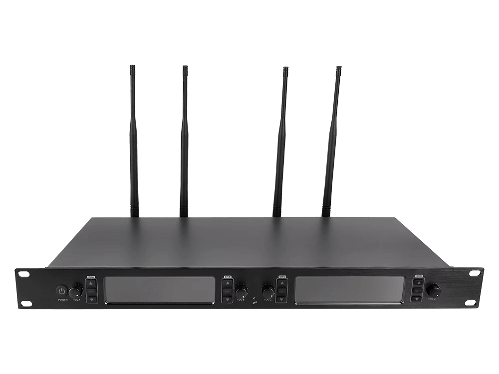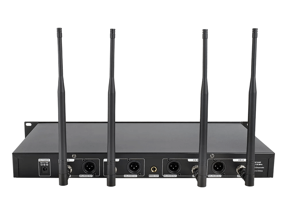 Axelvox DWS7000HT (FC Bundle) — беспроводная четырехканальная UHF-система с ручными динамическими передатчиками, построенная на цифровой схеме модуляции PI/4-DQPSK и рассчитанная на работу в диапазоне 710–726 МГц при высокой устойчивости несущей частоты и минимальной чувствительности к помехам. Комплект включает рэковый металлический приемник AX-7000F с четырьмя независимыми трактами, автоматическим подбором свободных частот, функциями Auto-Mute и ИК-синхронизации, а также четыре ручных передатчика с динамическими кардиоидными капсюлями, алюминиевыми корпусами, встроенной LCD-индикацией. Система предназначена для одновременной работы четырех микрофонов с возможностью раздельного или суммарного вывода сигнала через XLR и 1/4" Jack.