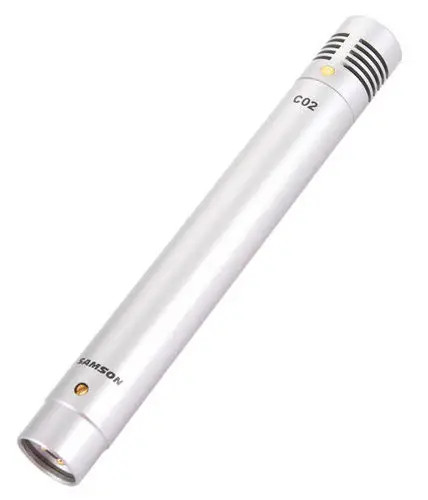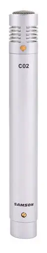 Небольшой конденсаторный супер-кардиоидный микрофон Samson C02. Отлично подойдет для записи подкастов и авторских комментариев. В комплект включен кейс, крепеж и позолоченный XLR разъем.