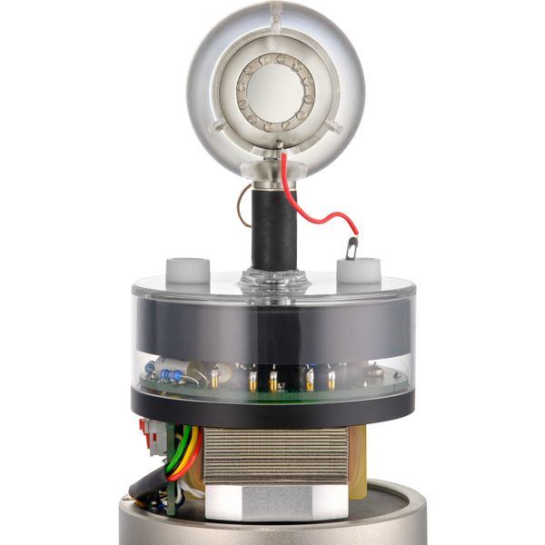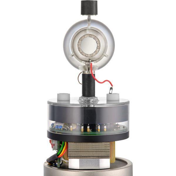 Neumann M 50 V Set — ламповый студийный конденсаторный микрофон с всенаправленной диаграммой направленности, представляющий собой точное переиздание легендарной модели. Конструкция построена по принципу градиентного преобразователя давления с всенаправленной капсулой, установленной в акриловой сфере диаметром 40 мм, что формирует уникальную частотно-зависимую диаграмму направленности: на низких частотах микрофон ведёт себя как всенаправленный, а на высоких постепенно становится более направленным. Капсула K 33 Ti с ультратонкой металлической мембраной из титана обеспечивает быстрый переходный отклик, высокую точность передачи атак и улучшенную температурную и механическую стабильность. Микрофон использует классическую ламповую схему с выходным трансформатором, заимствованной из архитектуры M 49 V. Модель предназначена для классических стереофонических конфигураций, включая AB и Decca Tree, а также для записи оркестров, ансамблей, фортепиано, струнных секций, духовых инструментов и в качестве комнатного микрофона. Устройство собирается вручную и паяется в Германии, комплектуется блоком питания с автоматической адаптацией к сетевому напряжению и фирменным подвесом с элементами механической развязки.