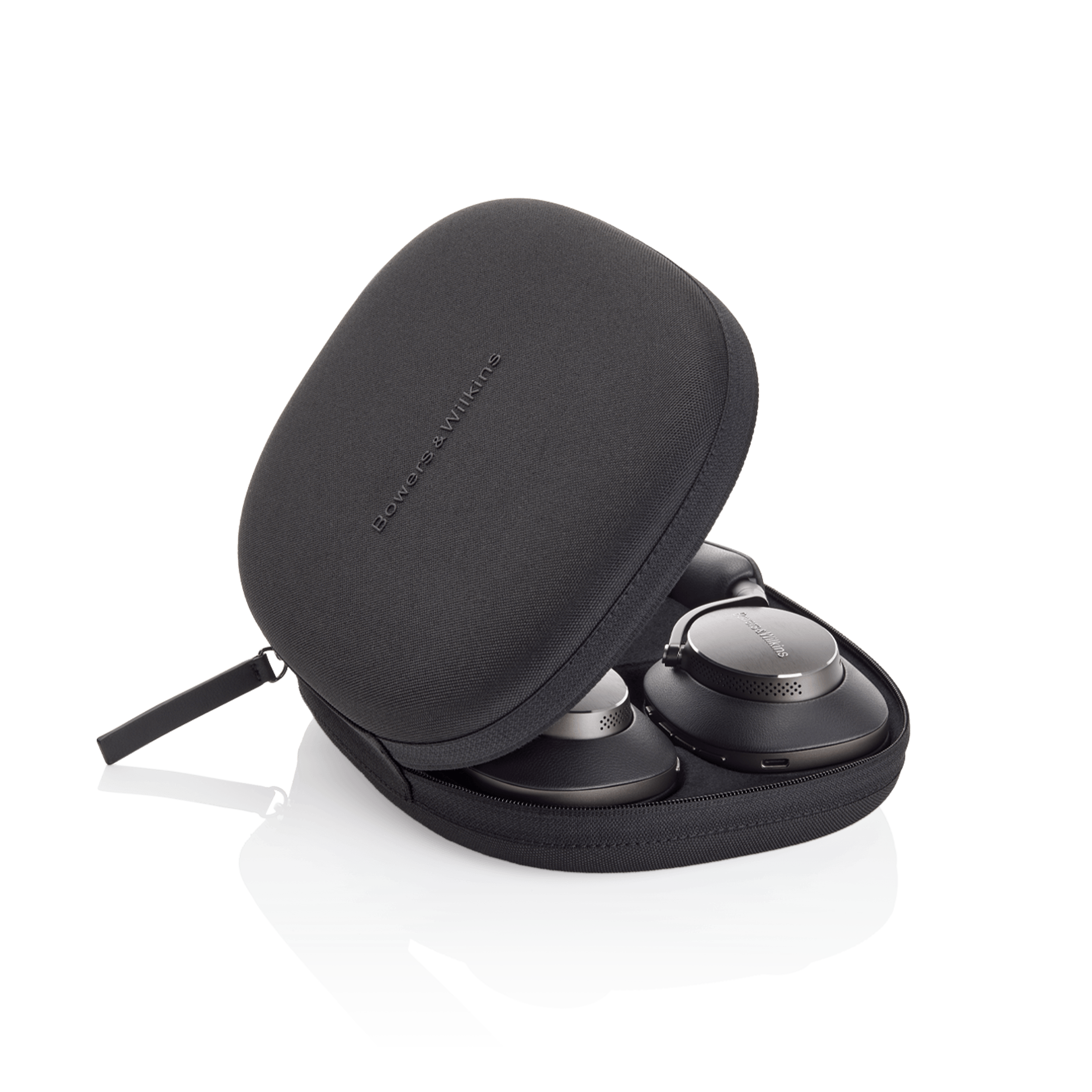 Bowers & Wilkins Px8 Black — беспроводные накладные наушники закрытого типа. Основу акустической конструкции составляют 40-мм драйверы с углеродным конусом (Carbon Cone), размещенные под рассчитанным углом внутри корпусов, что обеспечивает точную пространственную локализацию и сниженный уровень искажений. Карбоновые диффузоры отличаются высокой жесткостью и малой массой, благодаря чему динамики воспроизводят мельчайшие нюансы записи, особенно в верхнем диапазоне, с естественной атакой и детализированной текстурой. Управление работой излучателей осуществляется 24-битным цифровым процессором (DSP), позаимствованным из студийных систем Bowers & Wilkins. Наушники поддерживают кодеки aptX Adaptive, aptX HD, aptX, AAC и SBC. Система из 6 микрофонов обеспечивает активное шумоподавление без потери динамики, при этом два микрофона выделены для голосовой связи, что гарантирует чистоту речи даже в шумных условиях. Конструкция выполнена из алюминия авиационного класса с легкими, но прочными шарнирными дужками, что исключает люфты и вибрации. Амбушюры изготовлены из пены с эффектом памяти и покрыты мягкой nappa-кожей. Px8 также оснащены сенсором автопаузы (Wear-Detection), функцией Ambient Pass-Through, интерфейсом USB-C для зарядки и проводного подключения, а также поддерживают управление и потоковую передачу через фирменное приложение Bowers & Wilkins Music App, которое интегрируется с сервисами Deezer, Qobuz, TIDAL HiFi Plus, Pandora и Last.FM.