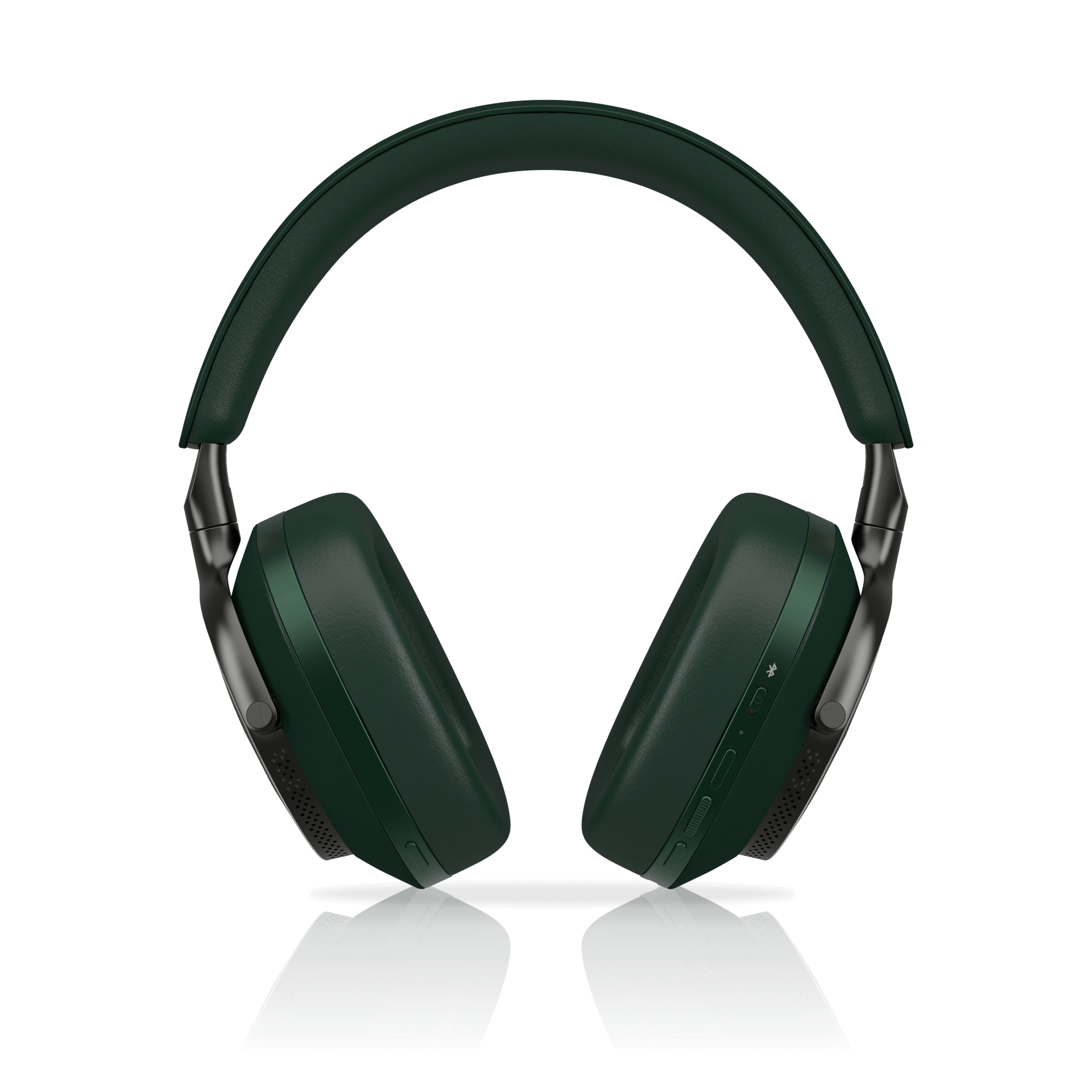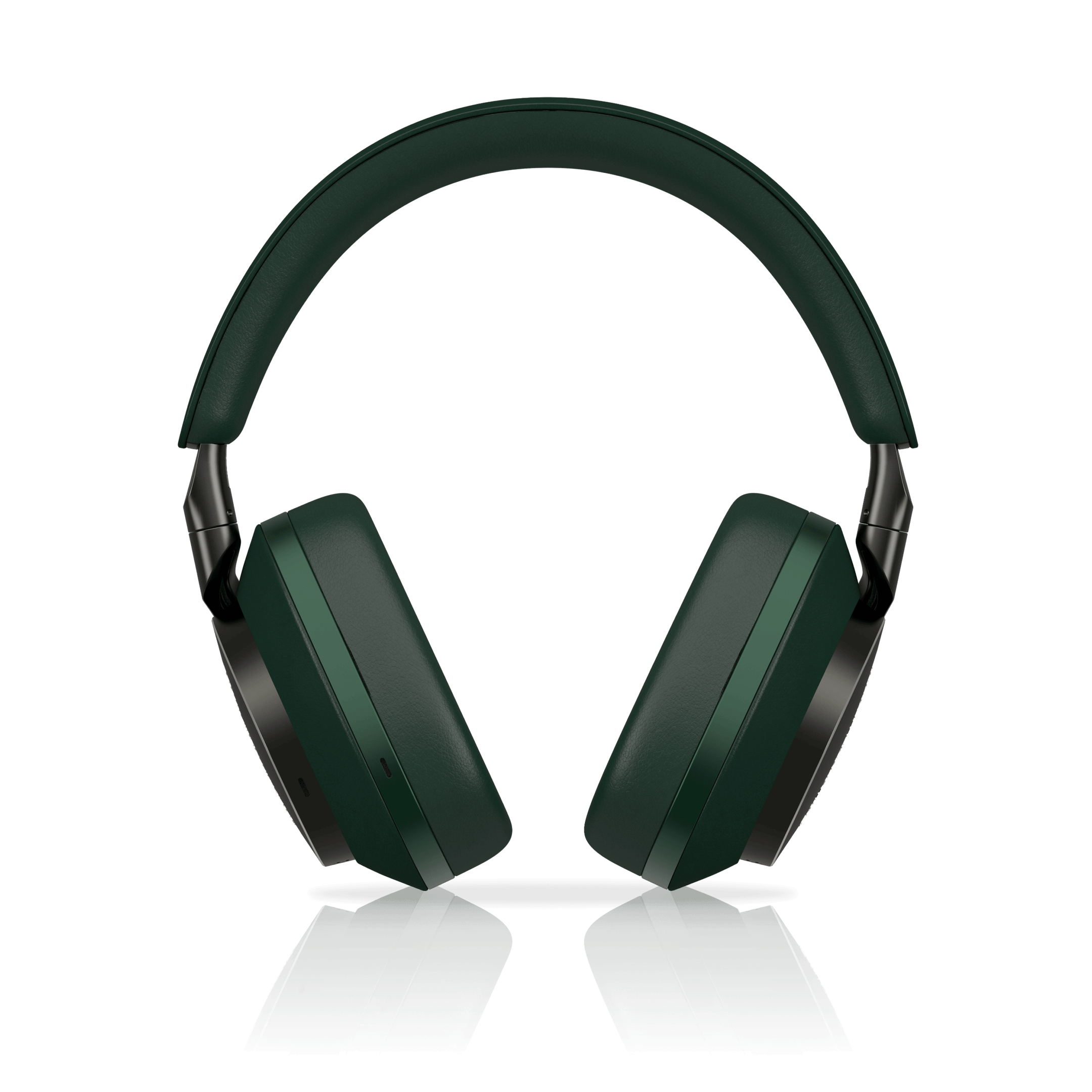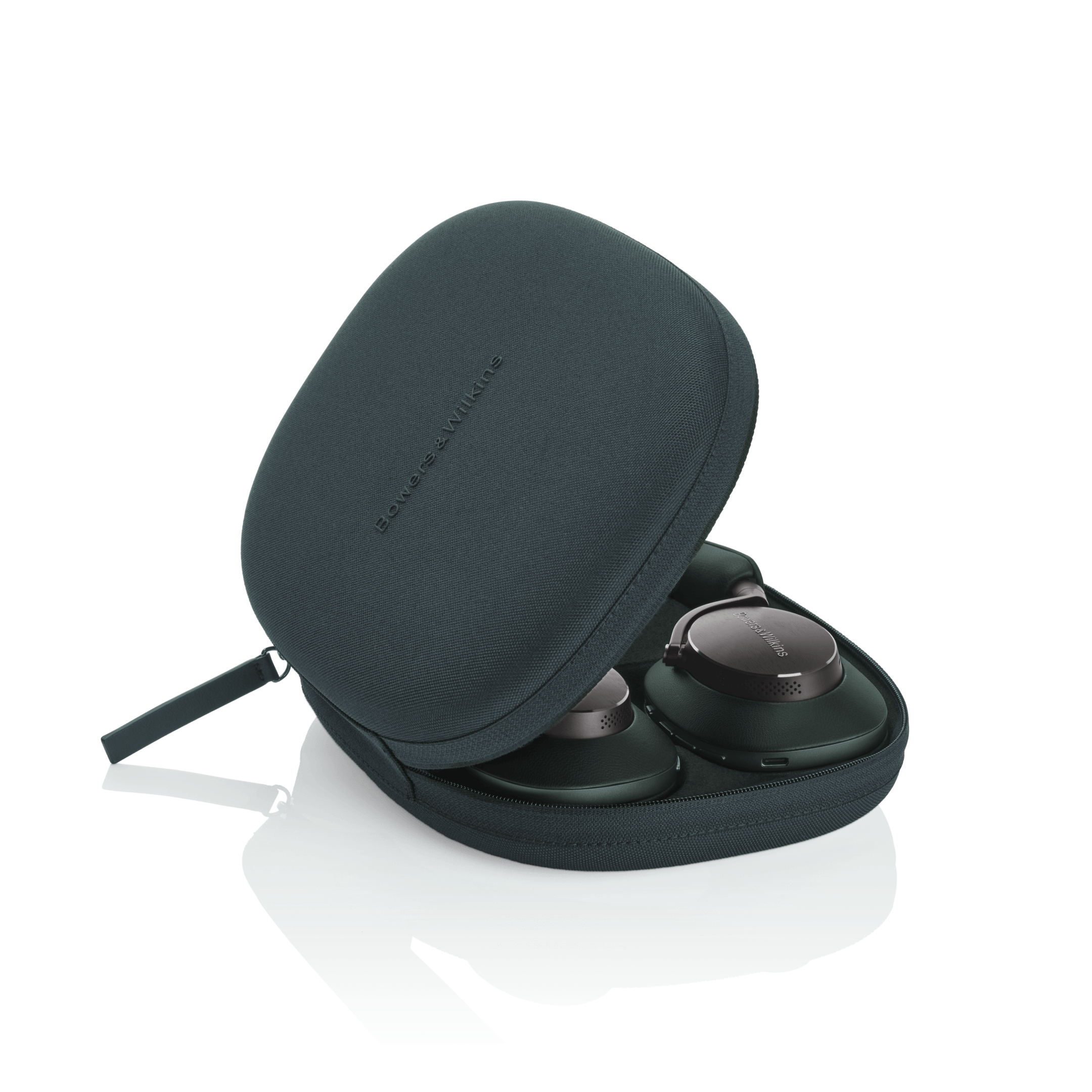Bowers & Wilkins Px8 Dark Forest — беспроводные накладные наушники закрытого типа. Основу акустической конструкции составляют 40-мм драйверы с углеродным конусом (Carbon Cone), размещенные под рассчитанным углом внутри корпусов, что обеспечивает точную пространственную локализацию и сниженный уровень искажений. Карбоновые диффузоры отличаются высокой жесткостью и малой массой, благодаря чему динамики воспроизводят мельчайшие нюансы записи, особенно в верхнем диапазоне, с естественной атакой и детализированной текстурой. Управление работой излучателей осуществляется 24-битным цифровым процессором (DSP), позаимствованным из студийных систем Bowers & Wilkins. Наушники поддерживают кодеки aptX Adaptive, aptX HD, aptX, AAC и SBC. Система из 6 микрофонов обеспечивает активное шумоподавление без потери динамики, при этом два микрофона выделены для голосовой связи, что гарантирует чистоту речи даже в шумных условиях. Конструкция выполнена из алюминия авиационного класса с легкими, но прочными шарнирными дужками, что исключает люфты и вибрации. Амбушюры изготовлены из пены с эффектом памяти и покрыты мягкой nappa-кожей. Px8 также оснащены сенсором автопаузы (Wear-Detection), функцией Ambient Pass-Through, интерфейсом USB-C для зарядки и проводного подключения, а также поддерживают управление и потоковую передачу через фирменное приложение Bowers & Wilkins Music App, которое интегрируется с сервисами Deezer, Qobuz, TIDAL HiFi Plus, Pandora и Last.FM.