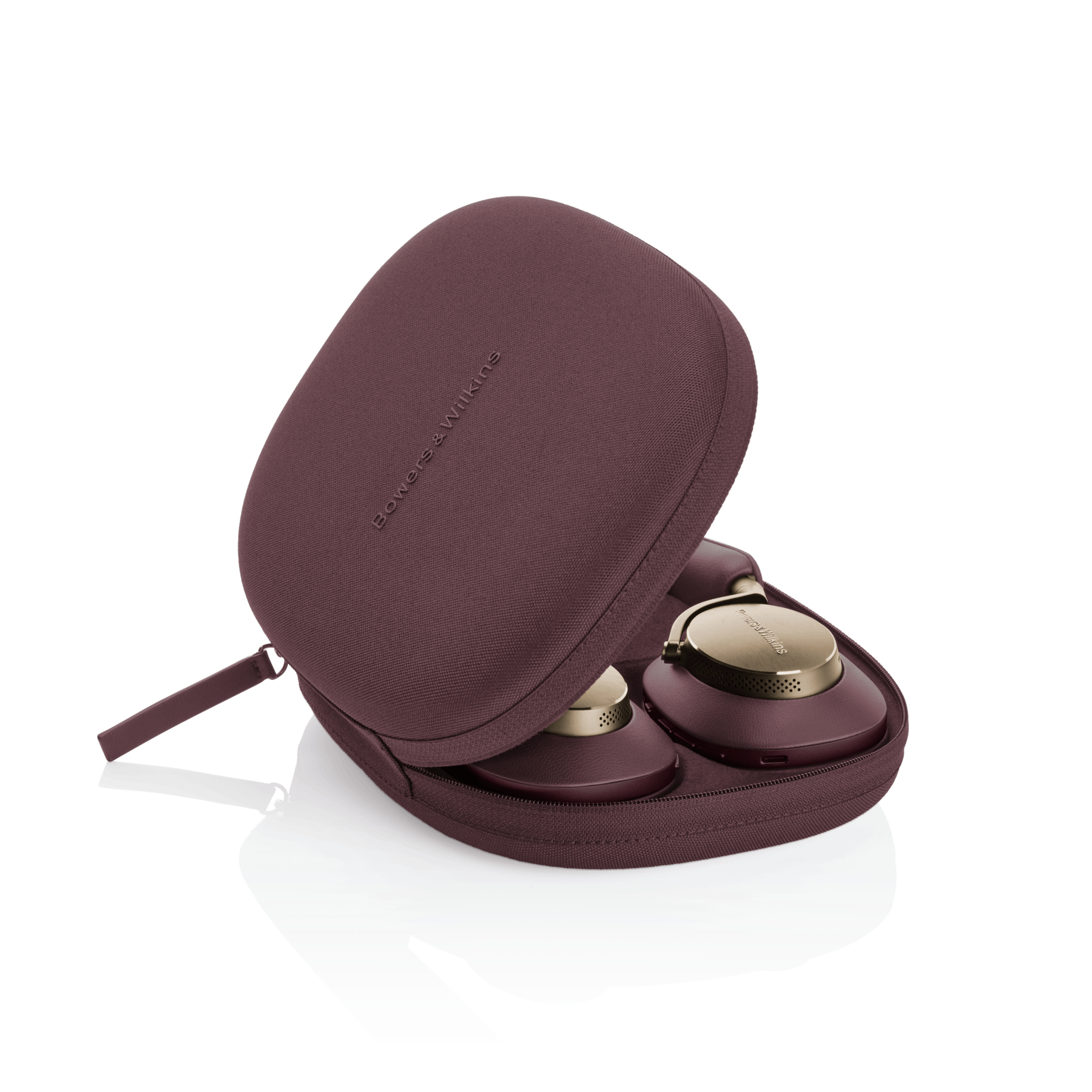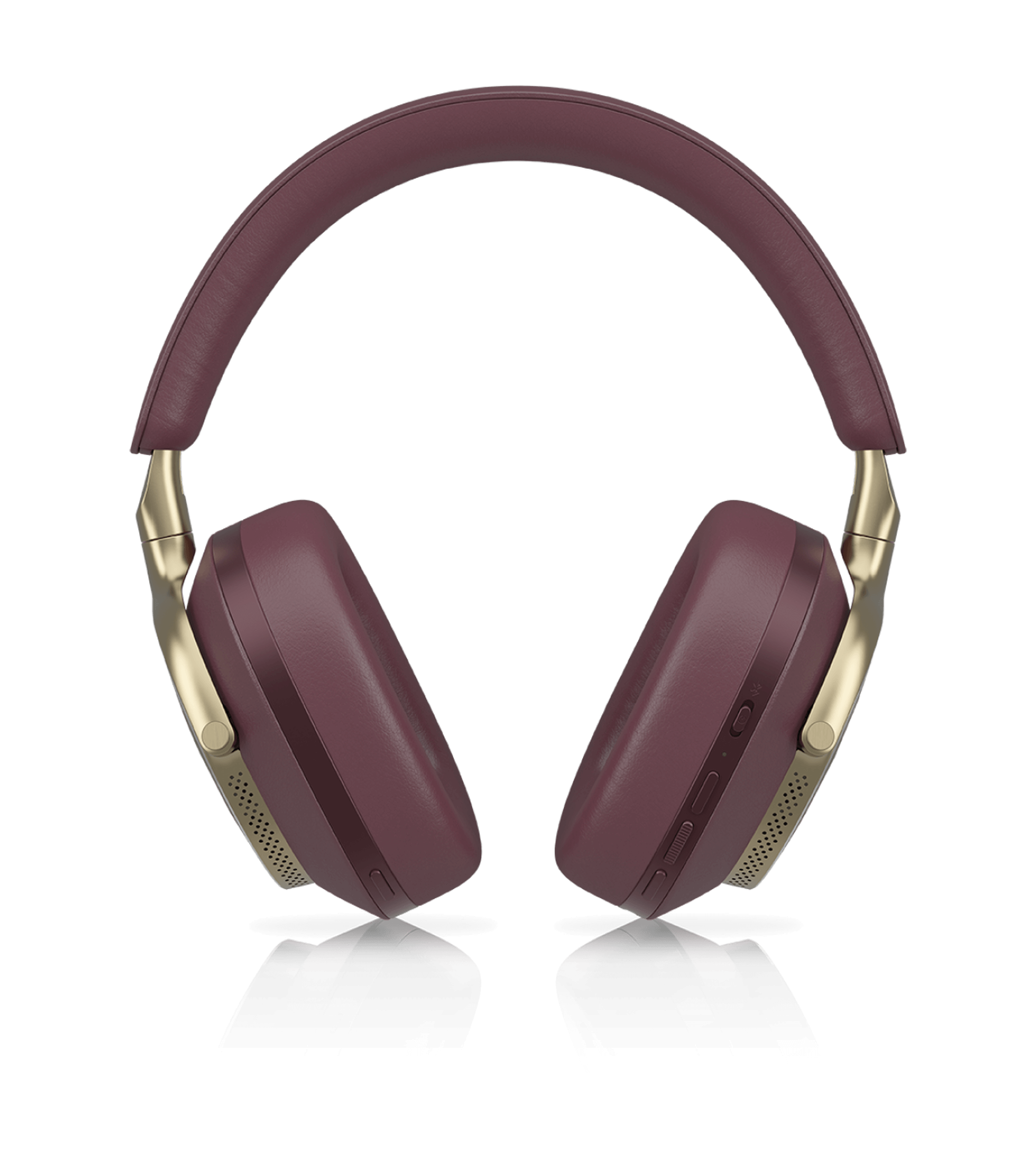 Bowers & Wilkins Px8 Royal Burgundy — беспроводные накладные наушники закрытого типа. Основу акустической конструкции составляют 40-мм драйверы с углеродным конусом (Carbon Cone), размещенные под рассчитанным углом внутри корпусов, что обеспечивает точную пространственную локализацию и сниженный уровень искажений. Карбоновые диффузоры отличаются высокой жесткостью и малой массой, благодаря чему динамики воспроизводят мельчайшие нюансы записи, особенно в верхнем диапазоне, с естественной атакой и детализированной текстурой. Управление работой излучателей осуществляется 24-битным цифровым процессором (DSP), позаимствованным из студийных систем Bowers & Wilkins. Наушники поддерживают кодеки aptX Adaptive, aptX HD, aptX, AAC и SBC. Система из 6 микрофонов обеспечивает активное шумоподавление без потери динамики, при этом два микрофона выделены для голосовой связи, что гарантирует чистоту речи даже в шумных условиях. Конструкция выполнена из алюминия авиационного класса с легкими, но прочными шарнирными дужками, что исключает люфты и вибрации. Амбушюры изготовлены из пены с эффектом памяти и покрыты мягкой nappa-кожей. Px8 также оснащены сенсором автопаузы (Wear-Detection), функцией Ambient Pass-Through, интерфейсом USB-C для зарядки и проводного подключения, а также поддерживают управление и потоковую передачу через фирменное приложение Bowers & Wilkins Music App, которое интегрируется с сервисами Deezer, Qobuz, TIDAL HiFi Plus, Pandora и Last.FM.
