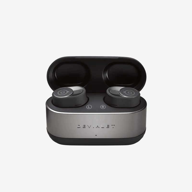 Devialet Gemini II Black — беспроводные наушники (True Wireless). Второе поколение Gemini II предлагает улучшенное адаптивное активное шумоподавление Devialet Adaptive Noise Cancellation, которое автоматически подстраивается под форму уха и окружающий шум. Наушники оснащены 10-мм динамическими драйверами с титановым покрытием. Эргономичная конструкция обеспечивает надёжную и удобную посадку в ухе, а универсальная сенсорная кнопка управления позволяет управлять воспроизведением, звонками и функциями шумоподавления простыми жестами. Bluetooth 5.2 и поддержка популярных кодеков AAC, SBC и Qualcomm aptX. Автономность составляет до 5 часов работы на одном заряде, а кейс позволяет продлить прослушивание до 22 часов. Также наушники оснащены функцией беспроводной зарядки Qi, влагозащитой по стандарту IPX4 и набором сменных силиконовых амбушюр.