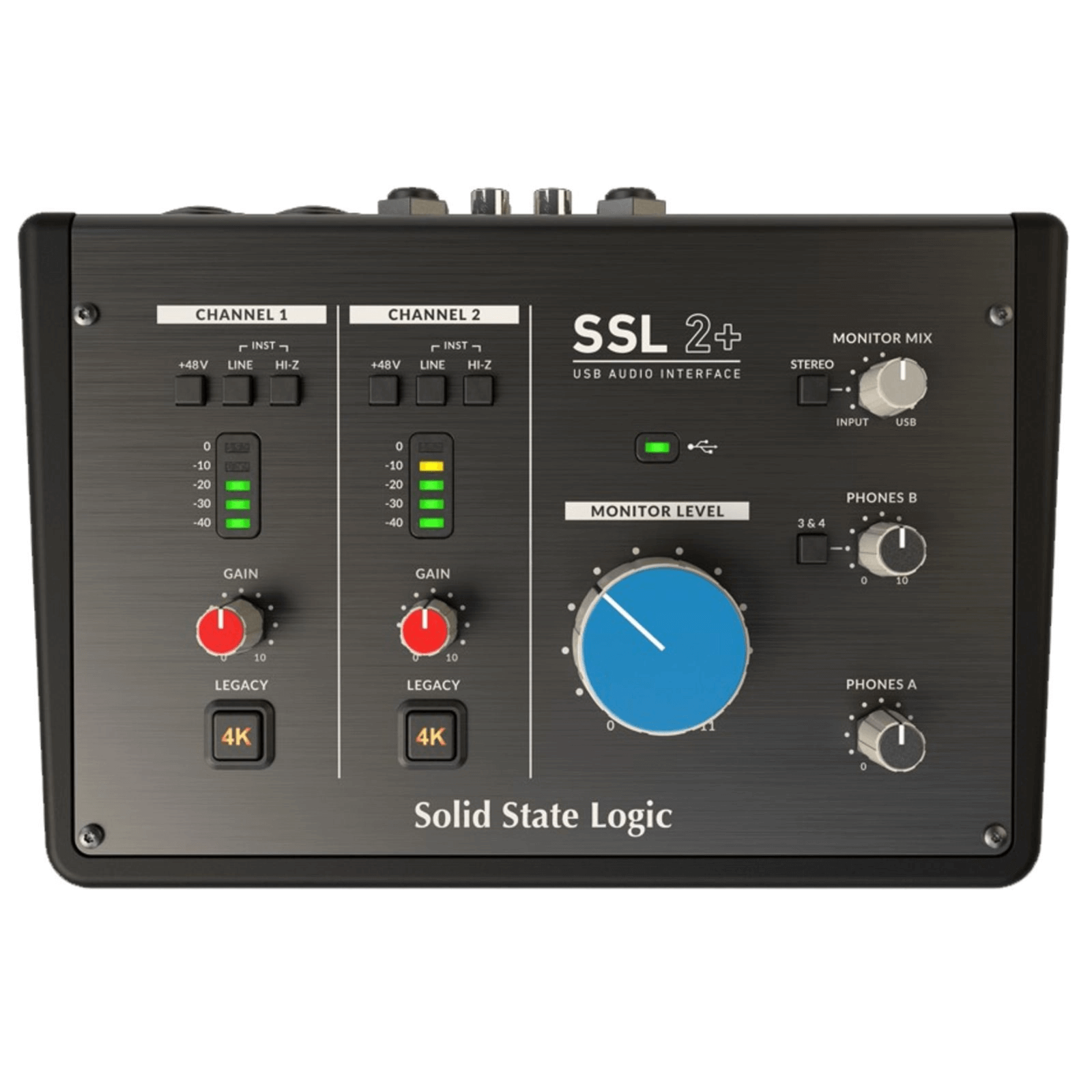 Solid State Logic SSL2+ Recording Pack — комплект для записи, объединяющий аудиоинтерфейс SSL 2+, конденсаторный микрофон SMC 80 со студийным шок-маунтом, закрытые наушники SHP 20 и фирменный набор программного обеспечения SSL Production Pack. Интерфейс построен на высокоточных 32-битных/192 kHz конвертерах, оснащен фирменными микрофонными предусилителями SSL с режимом Legacy 4K и расширенным набором аппаратных функций, включая высокочастотный фильтр, переключаемый линейный режим, фантомное питание и DC-связанные TRS-выходы для работы с модульной техникой. SMC 80 ориентирован на детальную передачу вокала и акустических инструментов. В комплект также входят все необходимые кабели, включая XLR и USB-C, а также доступ к обширному набору плагинов, инструментов и DAW для полноценной работы в студии и мобильных условиях.