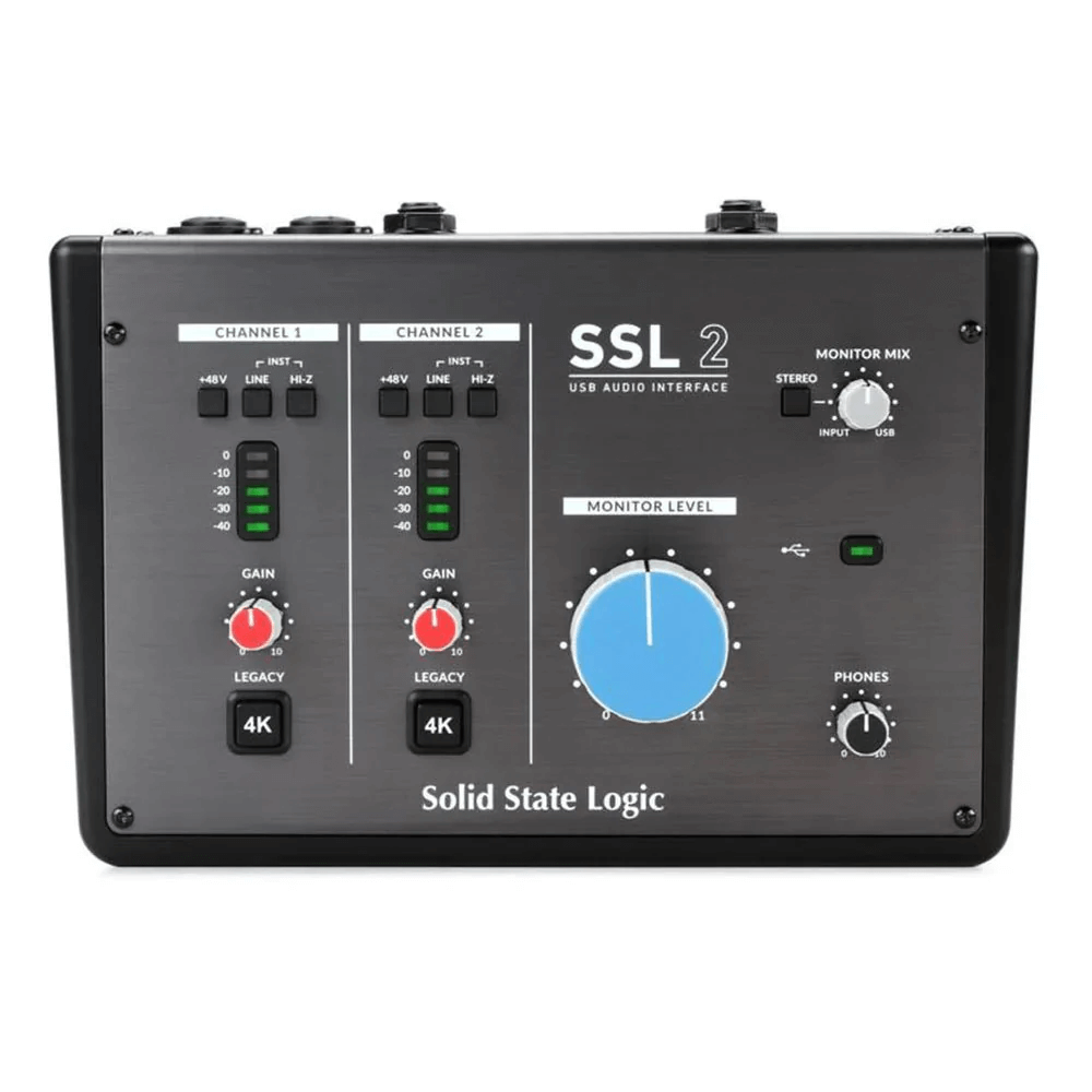 Solid State Logic SSL2 Recording Pack — комплект для записи, объединяющий двухканальный USB‑интерфейс SSL 2, студийный конденсаторный микрофон SMC 80 с амортизирующим шок-маунтом, закрытые наушники SHP 20, XLR-кабель и фирменный пакет программного обеспечения SSL Production Pack. Интерфейс построен на высококачественных 24-битных/192 кГц конвертерах, оснащен микрофонными предусилителями SSL с низким уровнем шума и режимом Legacy 4K, обеспечивающим аналоговое «окрашивание» звука, вдохновленное легендарными консолями серии SSL 4000. Интерфейс поддерживает фантомное питание +48 В, имеет высокочастотный фильтр, переключаемый линейный режим, балансные TRS-выходы. Микрофон SMC 80 обеспечивает детальную передачу вокала и акустических инструментов. В комплект включены все необходимые кабели для подключения микрофона и интерфейса, а программное обеспечение SSL Production Pack предоставляет широкий набор из виртуальных инструментов, плагинов и DAW.