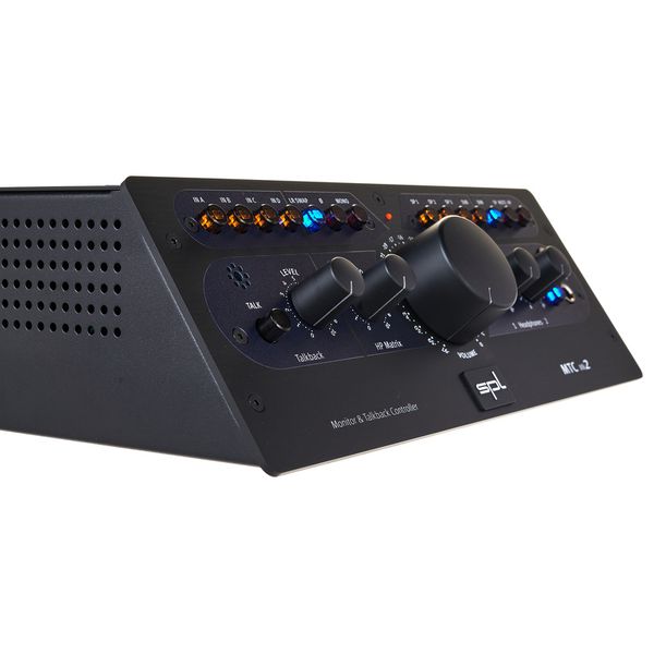 SPL MTC MK2 — контроллер студийных мониторов с интегрированным усилителем для наушников и системой talkback. Устройство обеспечивает точное управление до двух стереопар мониторов и сабвуфера с возможностью переключения между тремя источниками сигнала (балансные XLR, TRS и небалансные RCA). Модель оснащена аналоговым регулятором громкости с высокой точностью и минимальными искажениями, встроенным усилителем для наушников с мощностью до 2 × 1 Вт на нагрузке 250 Ом и функцией DIM (-20 дБ), MUTE и Mono для гибкой работы в студии. Talkback реализован через встроенный балансный микрофон XLR с регулировкой уровня. Частотный диапазон контроллера составляет 10 Гц – 100 кГц, динамический диапазон — 120 дБ, THD+N < 0,001 %. Вес — 2,4 кг.
