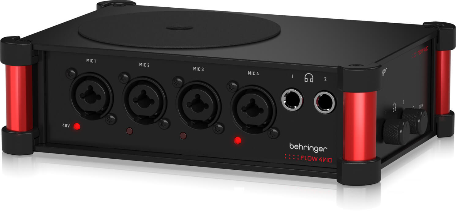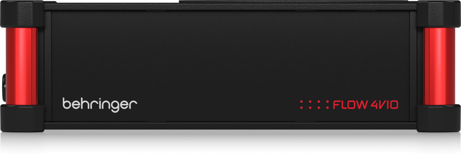 Behringer Flow 4VIO — внешний цифровой модуль расширения ввода/вывода, разработанный для работы с FLOW 4V. Устройство реализует архитектуру StageConnect и функционирует как удалённый I/O-модуль, обеспечивая передачу многоканального несжатого цифрового аудиосигнала, тактирования, управляющих данных и питания по одному XLR-кабелю с минимальной задержкой. Flow 4VIO построен на той же двухкаскадной архитектуре микрофонных предусилителей с 32-битной плавающей записью, что и основной микшер Flow 4V, и может использоваться как расширитель входов, так и автономный USB-аудиоинтерфейс, либо как удалённый I/O-модуль, питаемый по StageConnect от совместимых устройств.