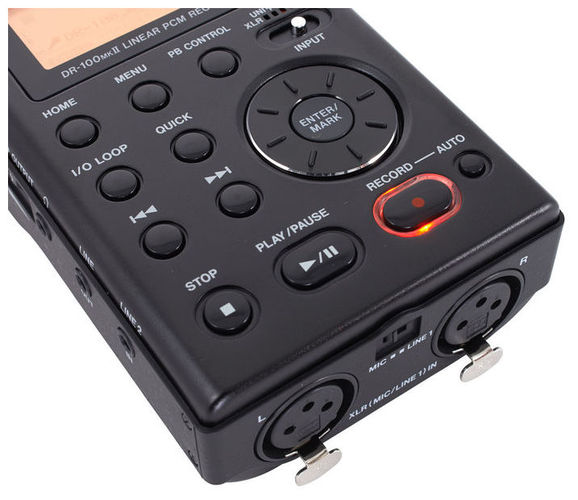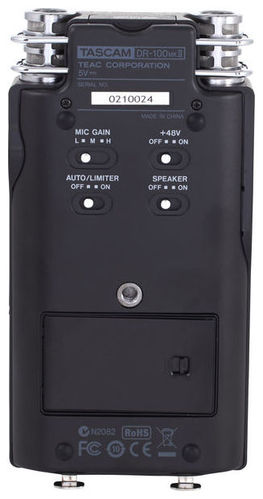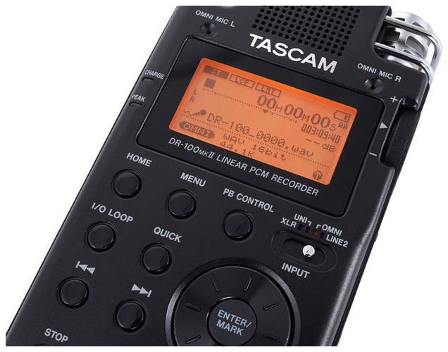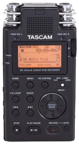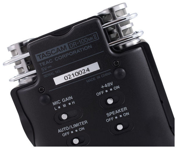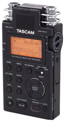 Прочный TASCAM DR-100mkII предлагает современные функции записи для музыкантов и инженеров, которые требуют большего от своих портативных рекордеров. Устройство имеет четыре встроенных микрофона - два кардиоидных и два всенаправленных - для отличного звучания записей. Пара XLR разъемов принимает сигналы микрофона с фантомным питанием +48 В для конденсаторных микрофонов, или балансные сигналы линейного уровня (новая функция на MKII).MKII версия также добавляет S / PDIF цифровой вход, блокировку разъема и многое другое.