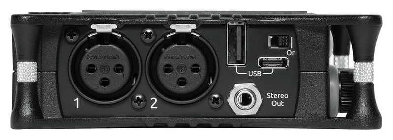 Коммутационные возможности включают три балансных микрофонных/линейных входа XLR (каждый с усилением до 96 дБ, фантомным питанием +48 В, лимитерами и фильтрами Low Cut), небалансный 3,5-миллиметровый двухканальный вход Aux/Mic для мониторинга и порты USB для подключения у компьютеру. Сенсорный LCD-экран IPS и функциональные кнопки облегчают доступ ко всем настройкам. Вариантов питания несколько: от батареек или аккумуляторов размера AA, от компьютера через шину USB-C/USB-A или от комплектного сетевого адаптера.