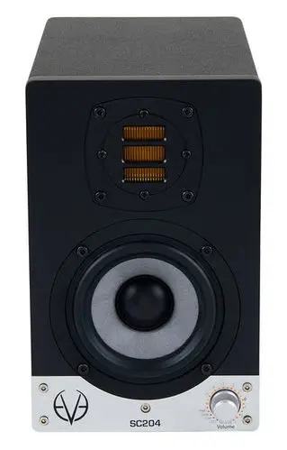 Eve Audio SC307 – это профессиональный активный 3-полосный монитор, созданнный для работы в ближнем поле. Монитор имеет пару 7'' динамиков и ленточный твитер. Большие динамики - это SilverCone, со слоеной мембраной сотовой структуры. Верхний слой выполнен из стекловолокна. Будучи одновременно легкой и жесткой, мембрана обеспечивает детализированный и прозрачный звук. В то время как первый динамик функционирует в роли широкополосного, второй занят низкими частотами. Роли динамиков можно менять.