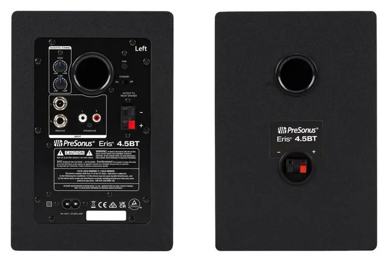 Встроенный Bluetooth 5.0 позволяет подключаются к мониторам по беспроводной сети. Также на задней поверхности расположены балансные разъемы 1/4” TRS и небалансные разъемы RCA. Ручки эквалайзера обеспечивают настройку высоких и низких частот для компенсации акустики помещения. На передней панели расположен стерео вход Aux In 1/8” TRS и выход для наушников 1/8” TRS. Ручка управления громкостью предназначена для настройки уровня динамиков и наушников.