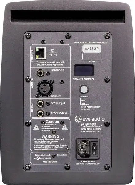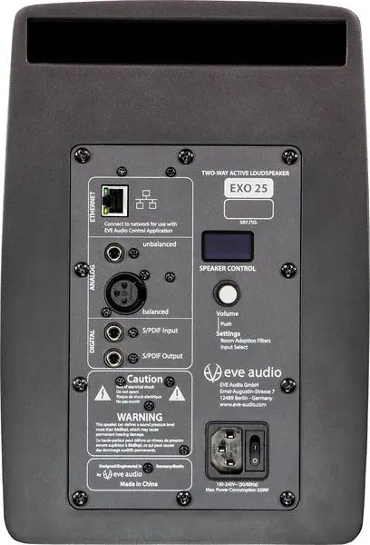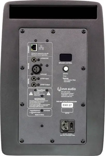 EVE Audio EXO 28 — активный двухполосный студийный монитор ближнего поля, предназначенный для сведения, мастеринга и иммерсивных аудиосистем. Модель оснащена 8-дюймовым вуфером с алюминиевой CAL-диафрагмой и ленточным твитером Precision AirMotion с волноводом GDC, обеспечивающими точную передачу низких и высоких частот. Интегрированный OLED-дисплей и SMART Control Knob на задней панели позволяют настраивать громкость, фильтры адаптации к помещению и выбирать источник сигнала. Поддержка Ethernet обеспечивает подключение к приложению EVE Control для точной калибровки и обновления прошивки. Монитор поддерживает аналоговые входы XLR и RCA, а также цифровой коаксиальный S/PDIF (192 кГц / 24-бит). Корпус с низкой дифракцией и закруглёнными краями минимизирует искажения, а передняя подсветка логотипа отображает статус системы. EXO 28 подходит для систем Dolby Atmos и других иммерсивных форматов.