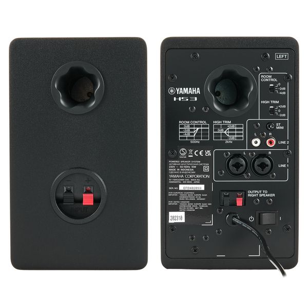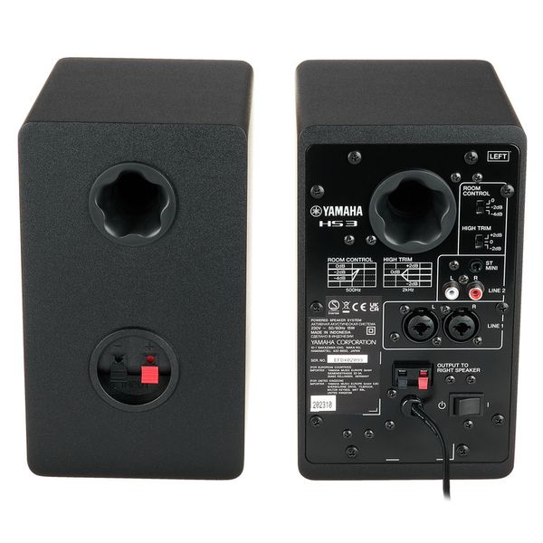 Yamaha HS 3 — активный 2-полосный студийный монитор с корпусом низкого профиля, который улучшает воспроизведение низких частот благодаря специальному отверстию в корпусе. Оснащён 3,5-дюймовым низкочастотным динамиком и 0,75-дюймовым твитером, обеспечивает воспроизведение частот от 85 до 20 000 Гц (+/-3 дБ) с максимальным звуковым давлением 100 дБ SPL. Монитор оборудован регулятором громкости на передней панели, переключателями Room Control и High Trim для точной адаптации под акустику помещения, а также разъёмами COMBO XLR/TRS, RCA и стерео мини-джек. В комплекте идут: антискользящий коврик, стерео кабель мини-RCA, кабель подключения мониторов L/R. Подходит для мониторинга в небольших студиях.