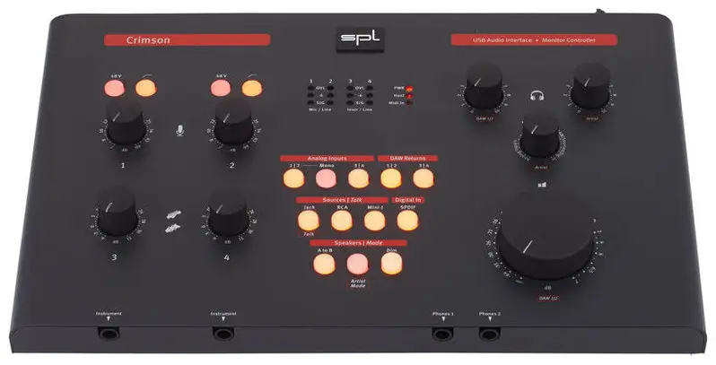 Интерфейс Apollo Twin Solo имеет достаточное количество разъемов: 2 высококачественных микрофонных/линейных предусилителя, 2 аналоговых линейных выхода, 2 аналоговых мониторных выхода с цифровым управлением и цифровой вход.