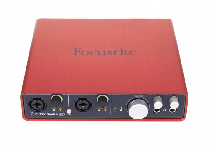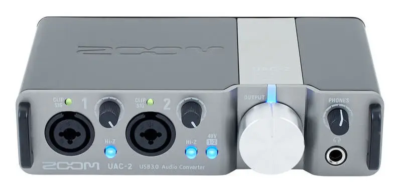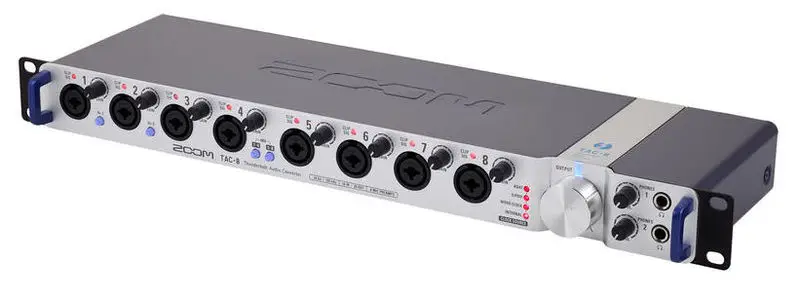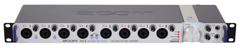 На переднюю панель TAC-2R помещены входы микрофонные/линейные XLR+TRS. К ним можно также подсоединять электрогитару или бас. Входы оснащены светодиодными индикаторами и регуляторами чувствительности. Встроен выход TRS под наушники, выход и вход MIDI, регулятор громкости, пара балансных выхода TRS, порт Thunderbolt и тумблер для аппаратного мониторинга с функциями Mono/Stereo.